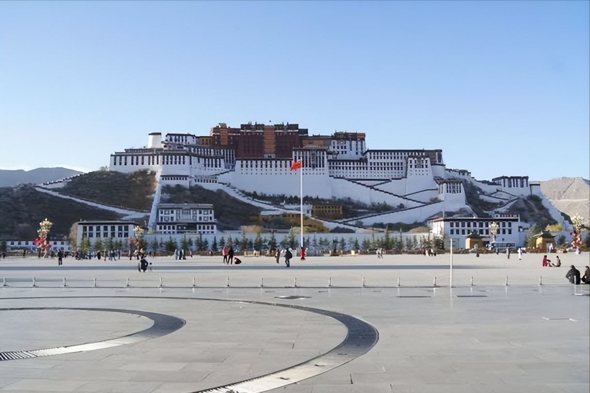 布达拉宫正是巧妙地利用山势,坐落在拉萨西北部的玛布日山上,形成了占地面积40多万平方米、建筑面积近14万平方米,政教合一的多功能的巨型宫堡。
