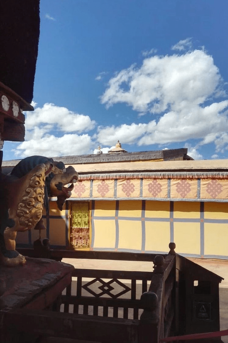 层层攀高,边走边看,主要有宫殿、灵塔殿、大殿、佛殿、经堂、僧舍、学校、各种职能机构办公处……