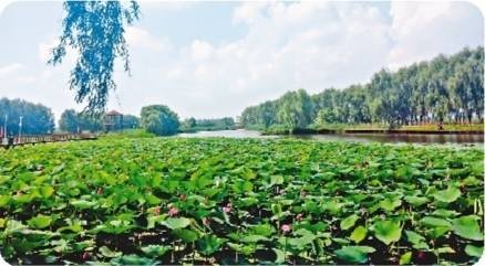 25公里的路程,在高速的汽车轮子面前,应算是咫尺之间。几十分钟后,我已经呼吸到白鱼泡的气息了。穿过一片园田,走过一排白杨,艳阳之下,一片碧绿的水面展现在面前,朋友告诉我,这就是白鱼泡,国家级湿地公园。