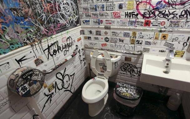 第三种是涂鸦酒吧。这是世界上一个很奇怪的酒吧,它的装修风格特色为厕所,并且是一个一个的隔间,人们在这里喝酒的时候,可以在墙壁上乱画。对于哪些搞艺术创作的人来说,这样的厕所酒吧会给他们带来灵感。