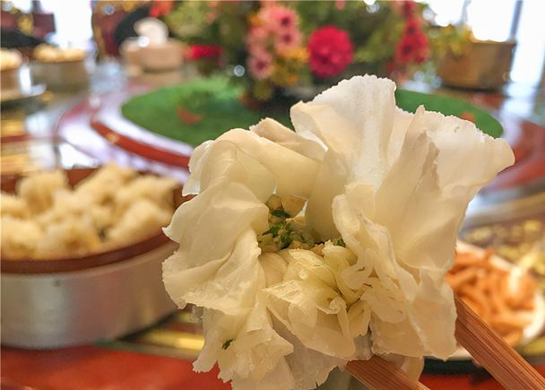 来个大特写,轻薄的皮透着光,稍麦出笼,鲜香四溢。也有人说由于归化城的烧麦边梢褶纹整洁清晰,酷似朵朵白花,所以内蒙人又将烧麦叫“稍美”。是不是很意外?这可比我们平时吃的烧麦要精致多了。