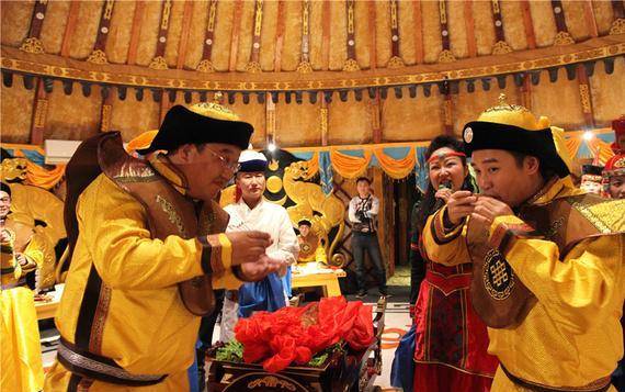 如果你想感受最豪华且传统隆重的内蒙古大餐,一定不要错过诈马宴。诈马,蒙语是指退掉毛的整畜,意思是把牛、羊家畜宰杀后,用热水退毛,去掉内脏,烤制或煮制上席。诈马宴是蒙古族特有的庆典宴飨整牛席或整羊席,烤全羊是妥妥的C位。