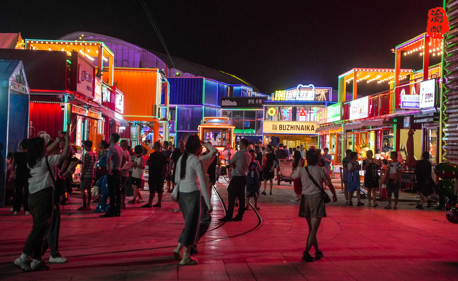 这个集市全名为万楼青年码头,占地面积约6100平方米,一共由658个集装箱组合而成,一共构成200余个商铺,是全国最大规模集装箱建筑群,这些店铺主要以餐饮小吃、游戏体验、零售等类型为主。