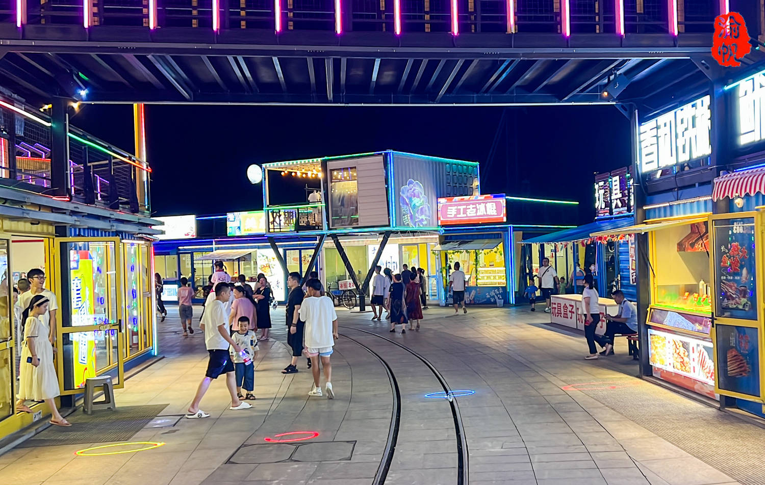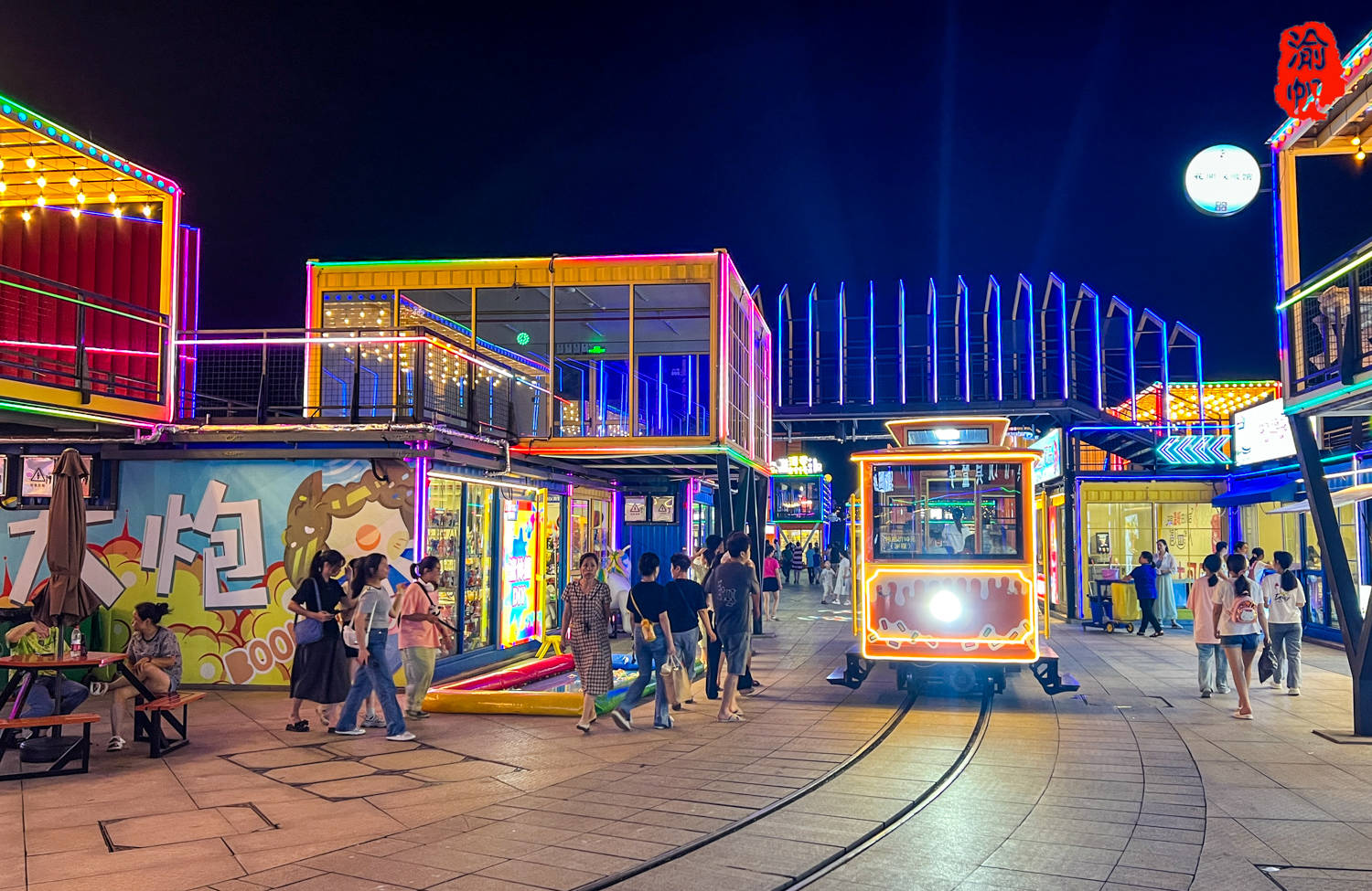 经了解才知道,这竟然是一个全部由集装箱构成的集市,后来我们特地进入其中逛了一圈,里面好吃的、好喝的、好玩的、好看的还不少,而且人气超火爆,显然已经成为湘潭的一个网红景点。