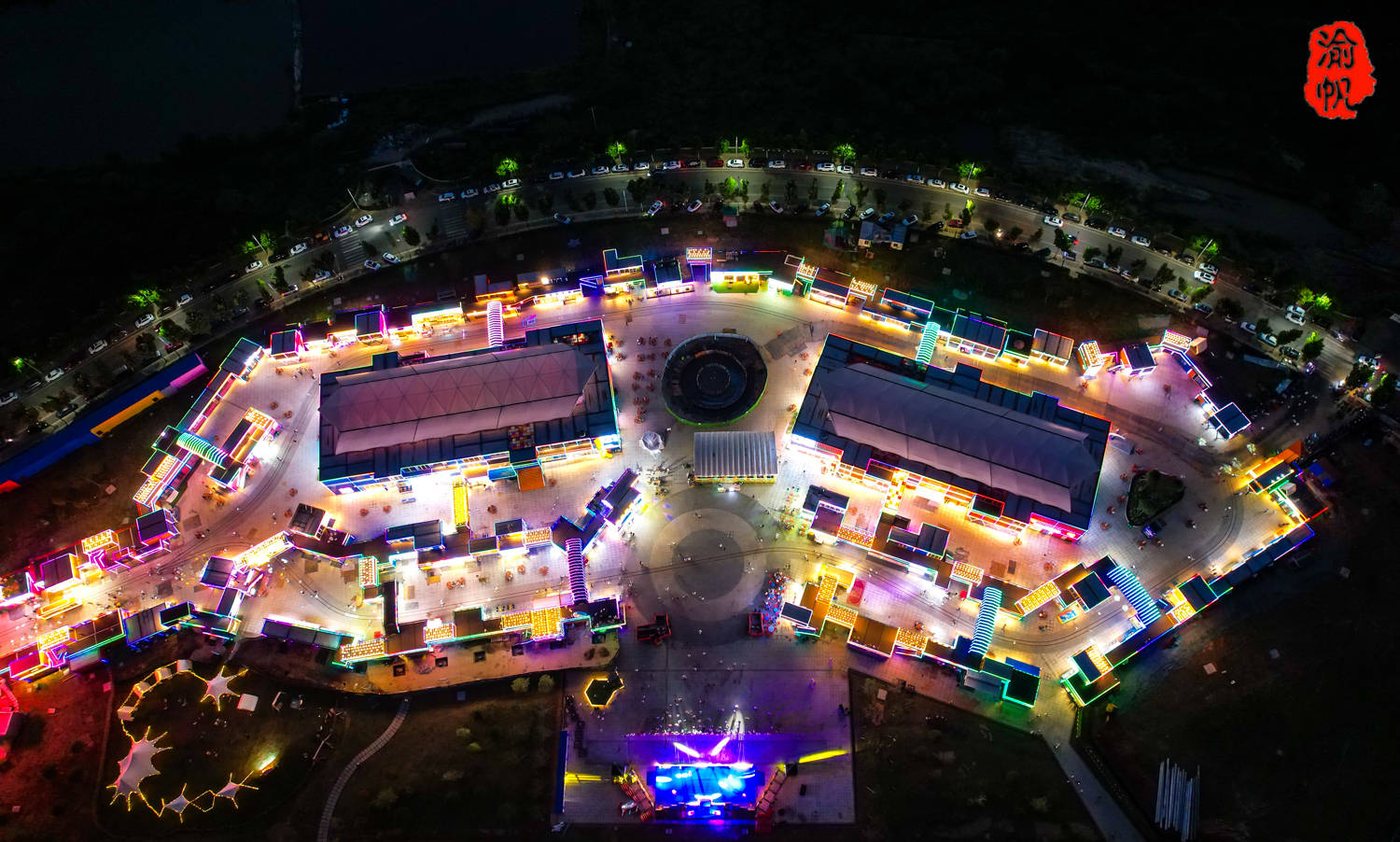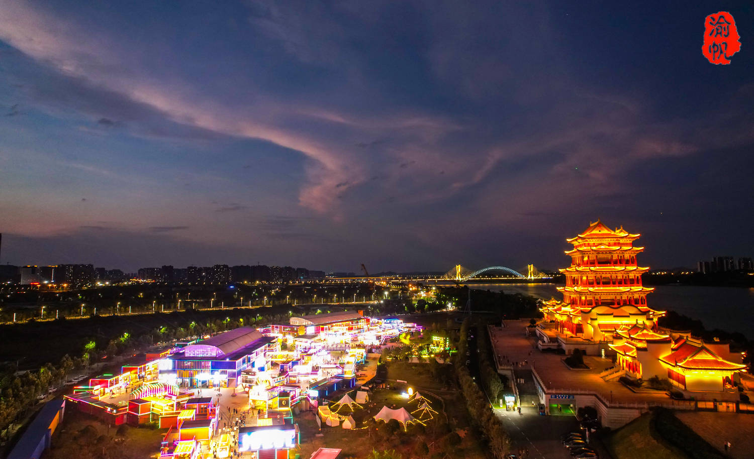 在我们的行程中原本并没有这个集市,我们的当晚主要是去看湘潭的标志性建筑——万楼,夜幕降临的时候,我们准备来拍拍这里的夜景,没想到升起无人机以后,发现万楼的下方一个个五颜六色的方格子建筑十分漂亮。