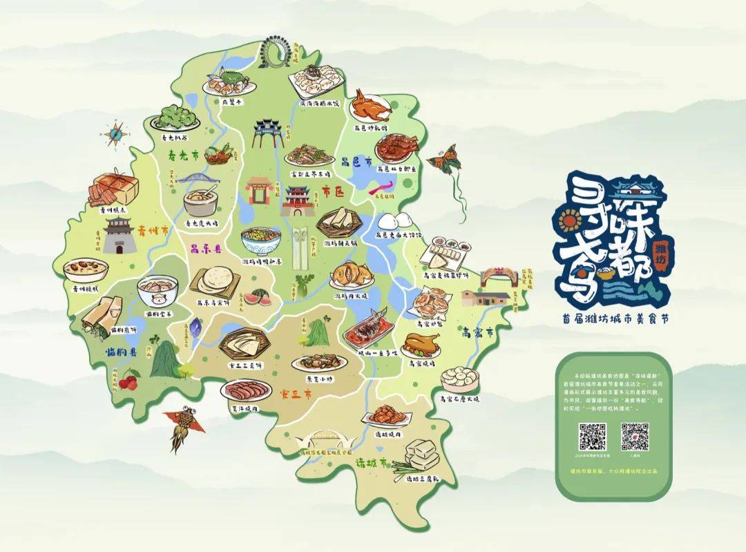 本次活动围绕促消费、拼经济大主题,特意推出创意手绘“潍坊美食地图”,涵盖潍坊特色名吃、推荐店铺及美食介绍,实现“一张地图吃转潍坊”,在逛与吃中了解潍坊当地美食的历史与底蕴。