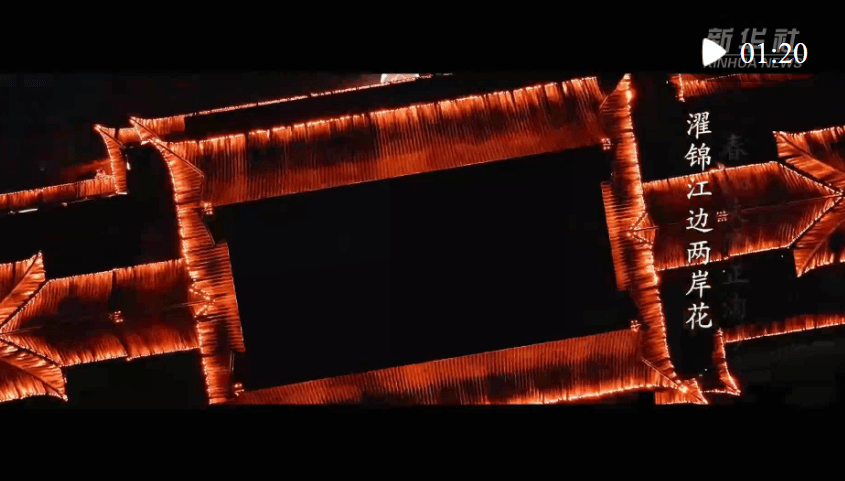 锦江两岸 灯光秀、艺术装置绘制的锦江故事卷轴缓缓展开