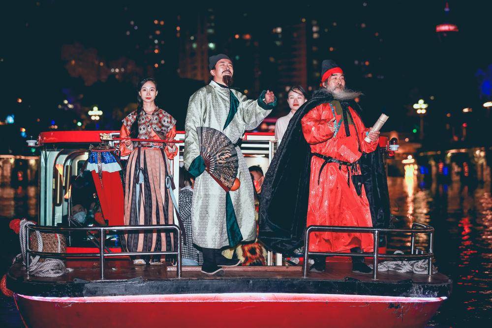 演员在游船上表演(2022年12月18日摄)。受访者供图↑