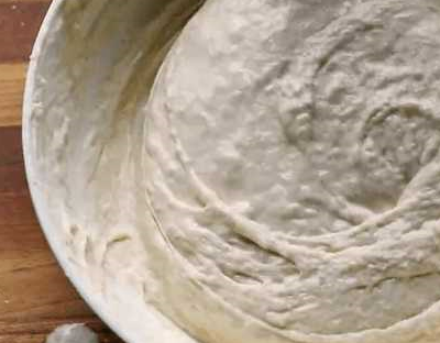 1.因为这个发面需要时间,我们先来这个。选用一个边缘比较薄的大碗,为了方便下面的拔面工作。倒入中筋面粉约280g,加入适量约2g的盐,水250g,这些进行搅拌搅匀。这面粉和水的比例很重要,多和少都会影响拔面出来的效果,按我刚才的比例就刚刚好了。搅拌成糊以后,倒入水,没过面糊就行,让它在水里焖上。在等待的过程,我们准备下面的食材。
