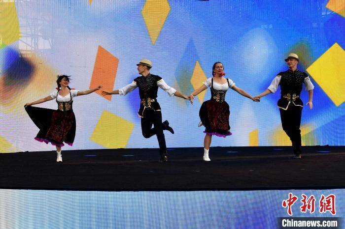 德国舞蹈演员现场表演巴伐利亚舞蹈。 王海滨 摄