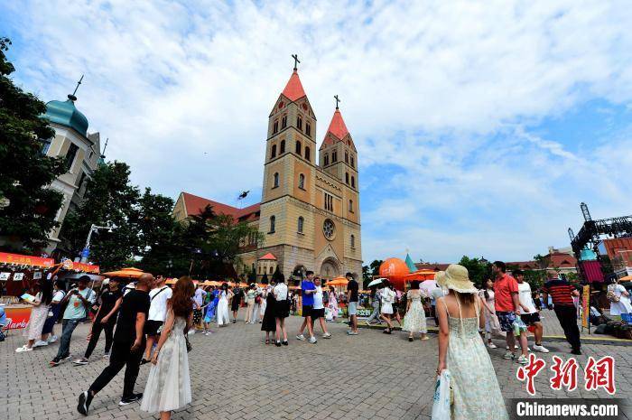 民众在中山路游玩。 王海滨 摄