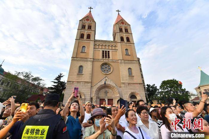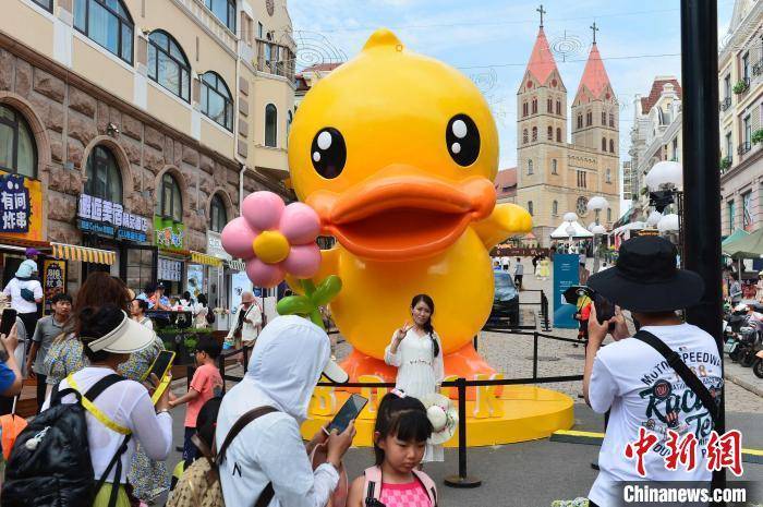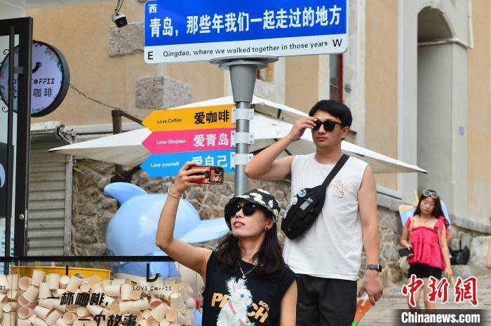 民众在中山路游玩拍照。 王海滨 摄