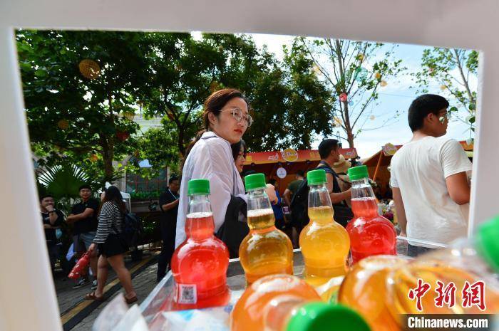 中山路现场摆放的果味啤酒。 王海滨 摄