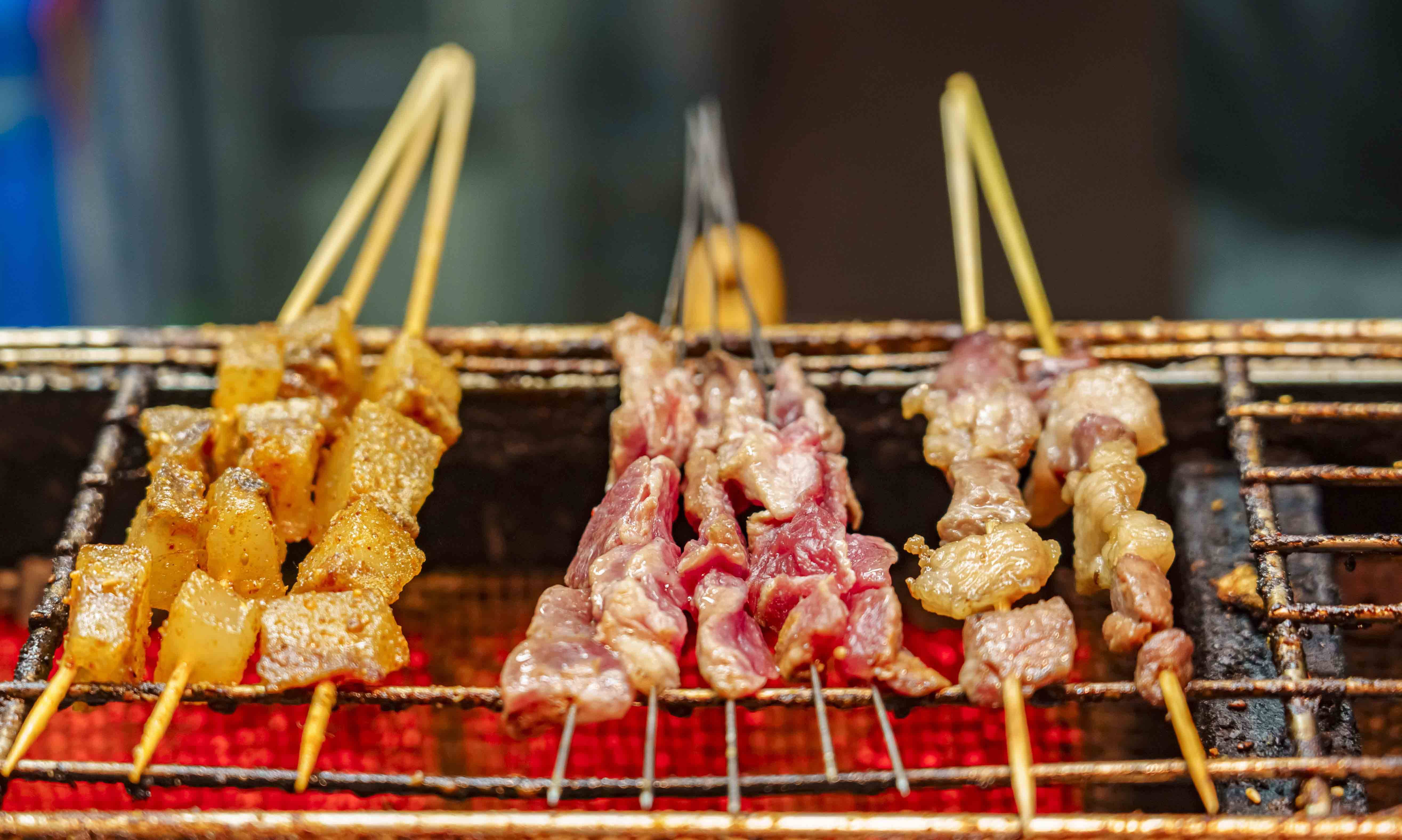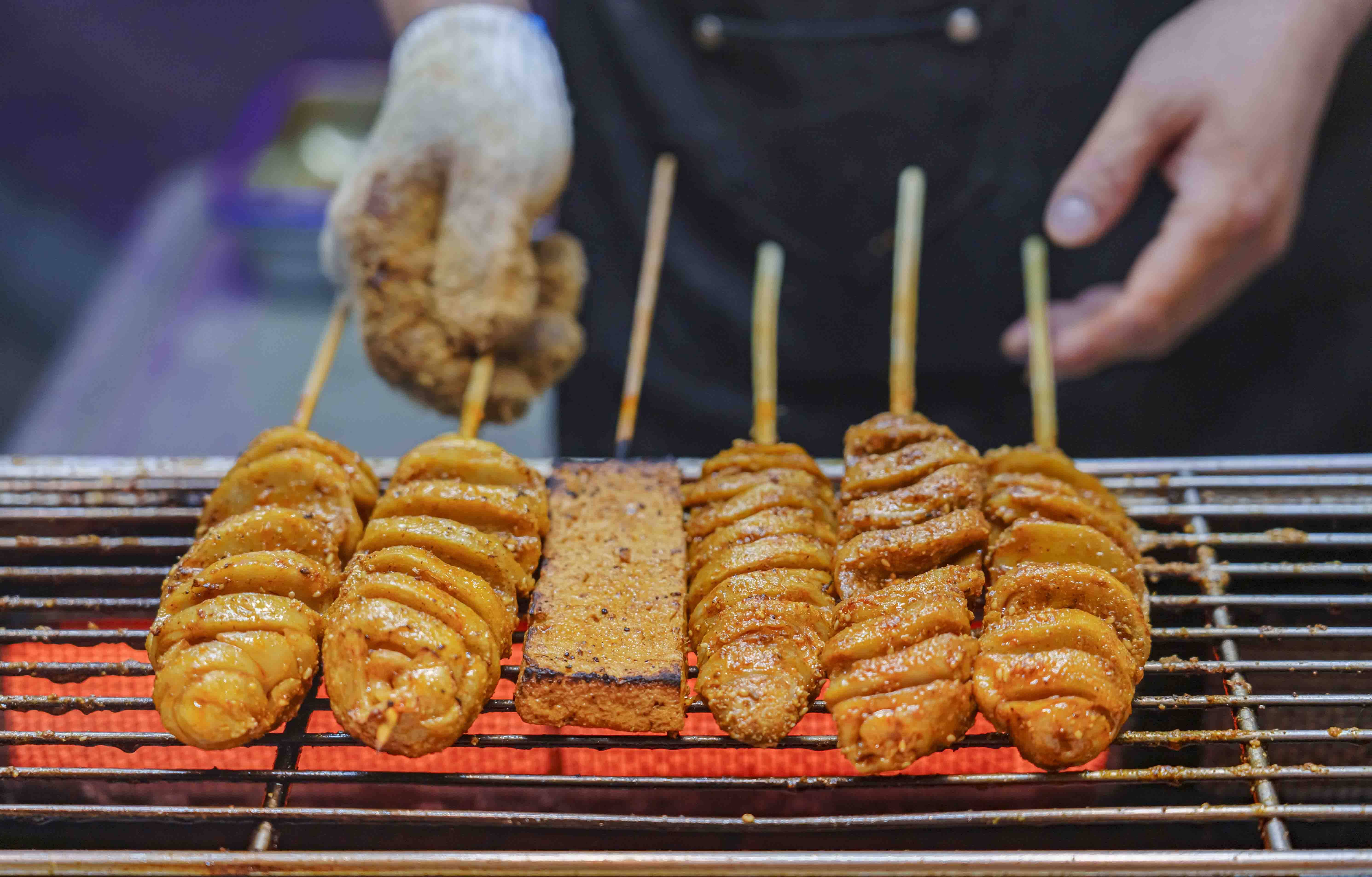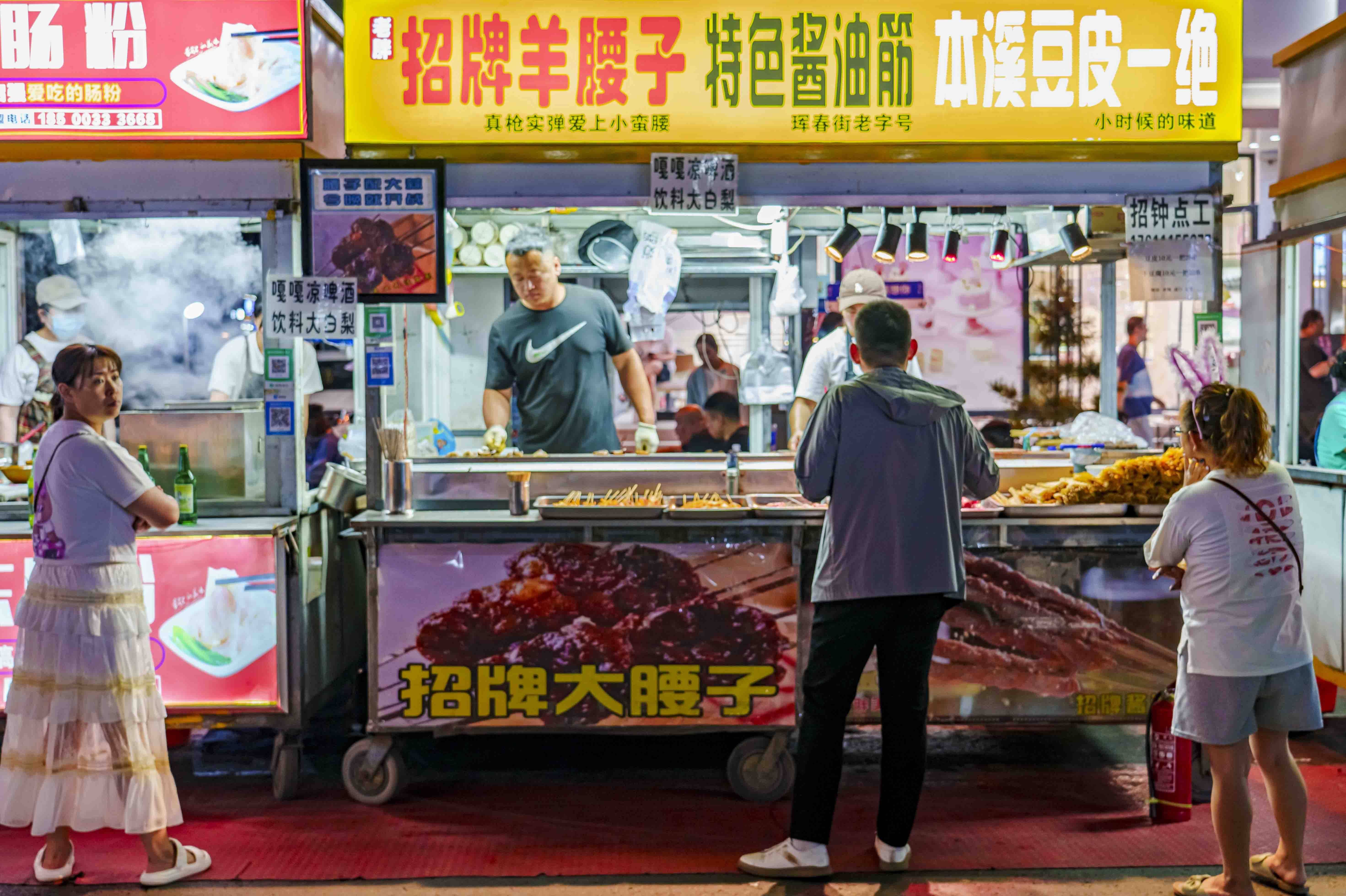 整个【河南街夜市】呈十字形分布在松花江畔,游客进入主街后一直往前走,到了中段十字路口时最为热闹;这里的夜市真心不错,不仅价格实惠份量实在,而且每一个摊贩都堪比脱口秀演员,路过高低得给你整两句段子,特别是像我们这种喜欢拍照的旅客,其实很多摊位都只拍了照片并没有购买,可是摊主也没有表现出任何不快,无论是哪一家都是很热情的接待,让游客一路欢声笑语吃着小吃,给到我的体验感确实不错,最终也是跟着本地人发现了这个超赞的烤冷面,5元一份好吃到爆,还有烤串也很实惠,肉多价优味道好,特别是当地特色的烤边包油和大腰子更是一绝,完全不会踩雷。