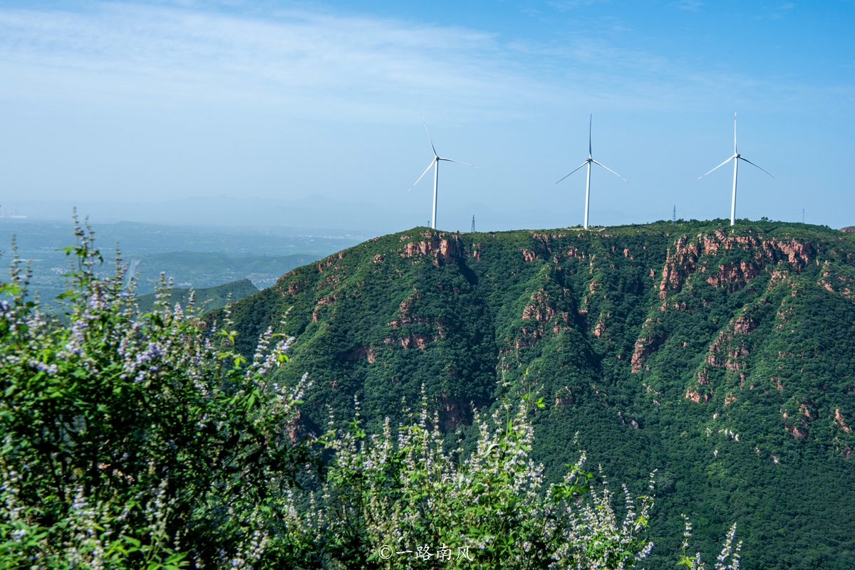 从郑州市区驾车出发,大约1个半小时就来到位于新密的伏羲山,这里的海拔接近800米,和山下比宛如两个世界,在山口和山顶的时候,由于没有遮挡加上对流,风特别大,吹在身上很舒服,是郑州周边理想的避暑胜地。
