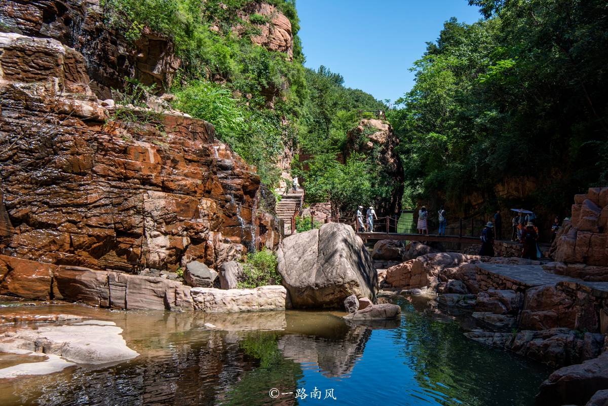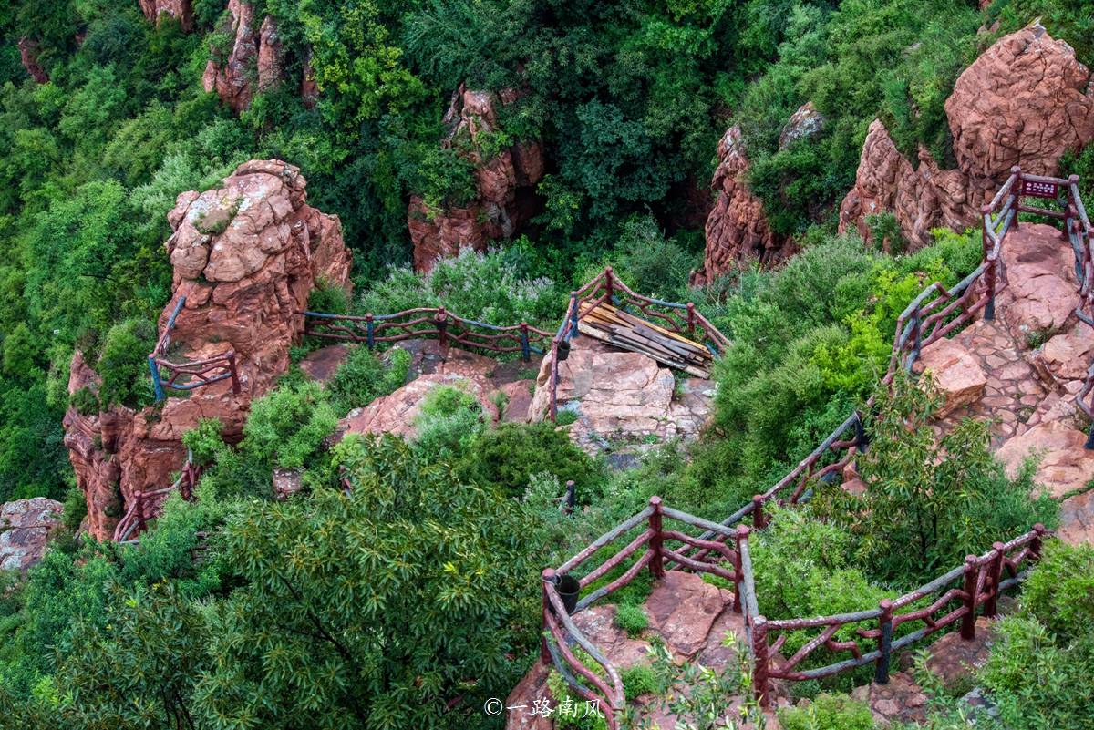 山上有大峡谷,有湖、有瀑布,还有云上牧场和小马高原,红石景观最多的是红石林景区、三泉湖景区和伏羲大峡谷。