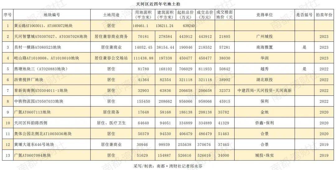 南都·湾财社记者统计发现,最近4年,天河区一共成交12宗宅地,其中有7宗都聚集在智慧城、牛奶厂、天河智谷一片,楼面地价在2.1万-5.1万元/平方米之间。