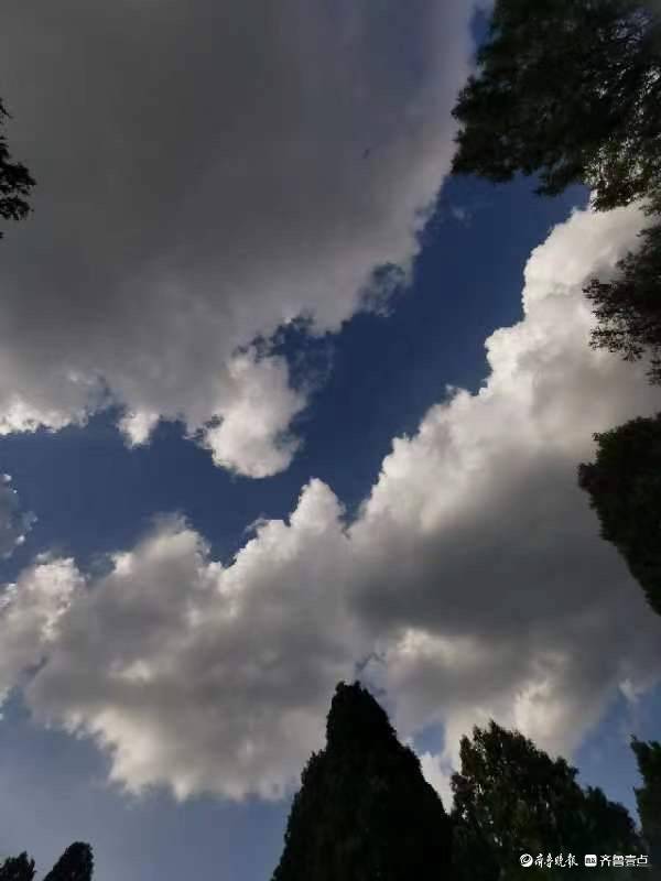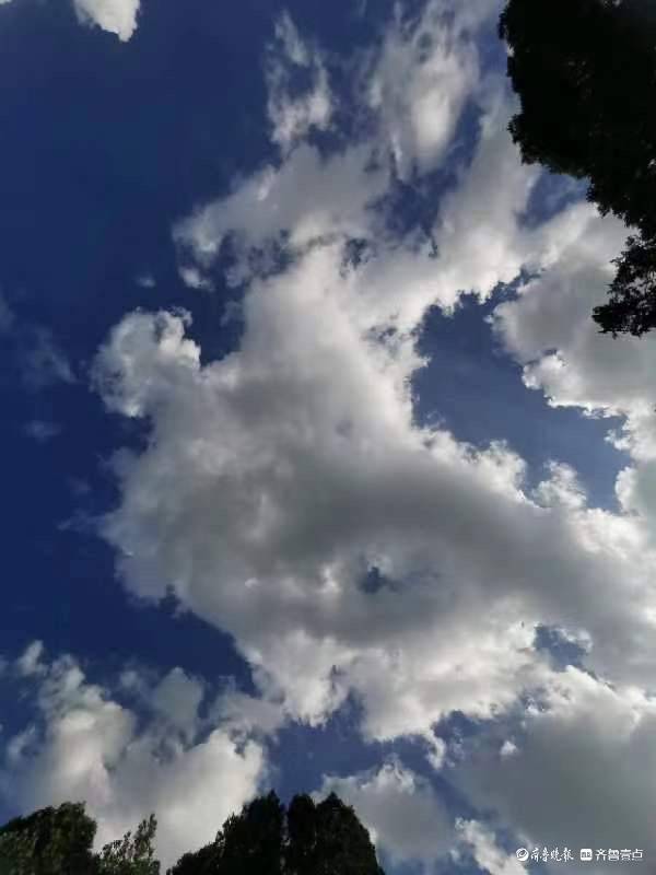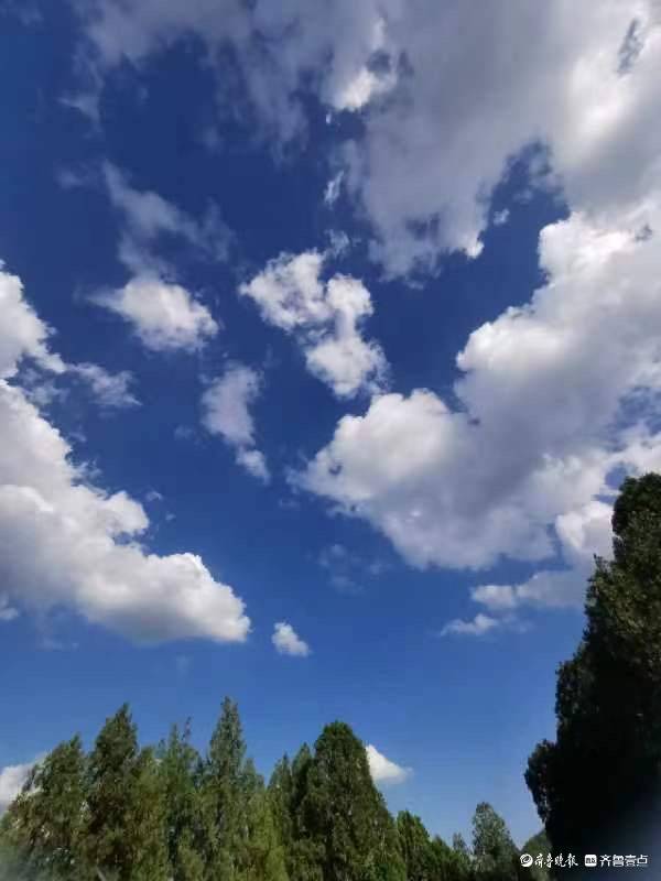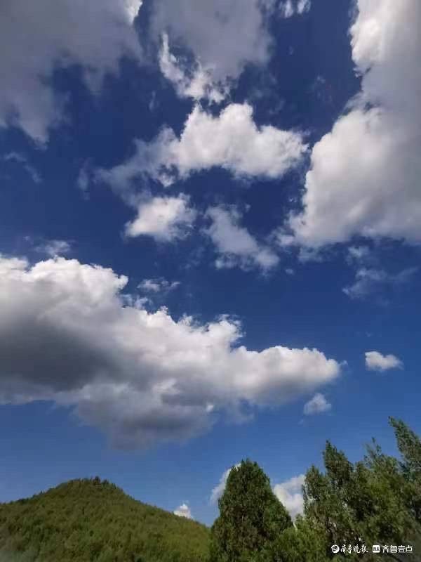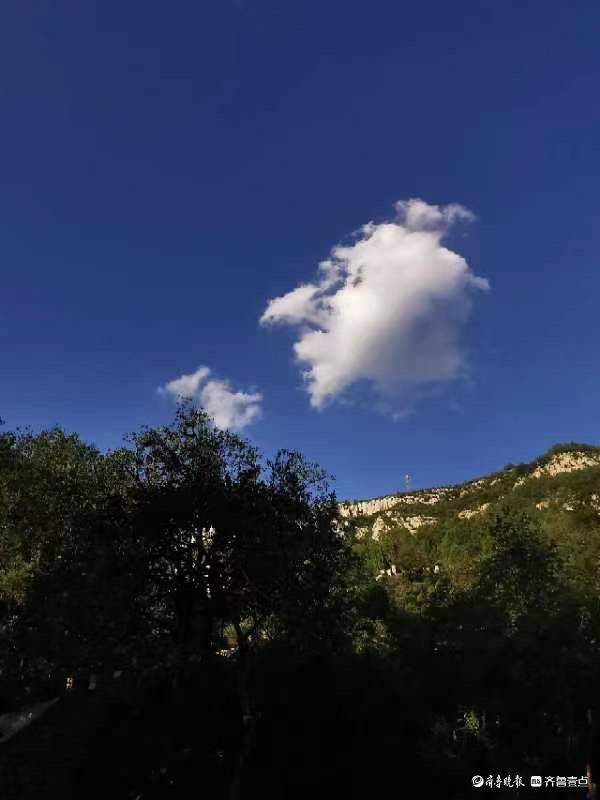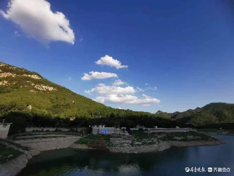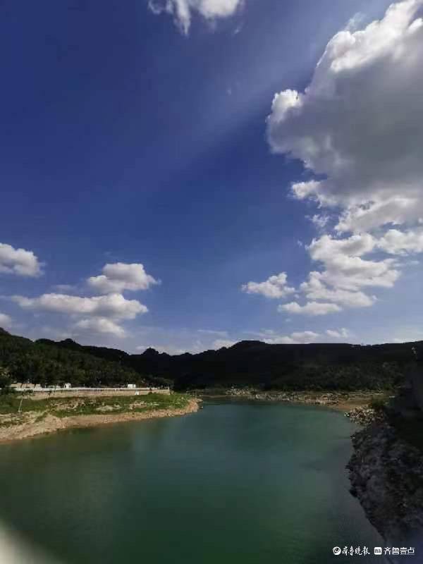 原标题:济南浆水泉水库,蓝天白云下的徒步者