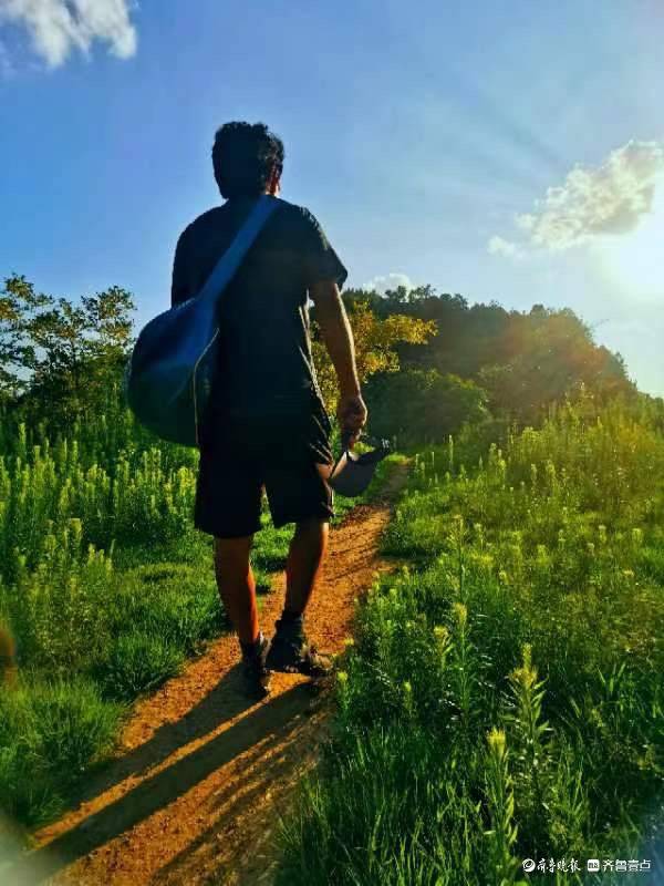 济南浆水泉水库,蓝天白云下的徒步者