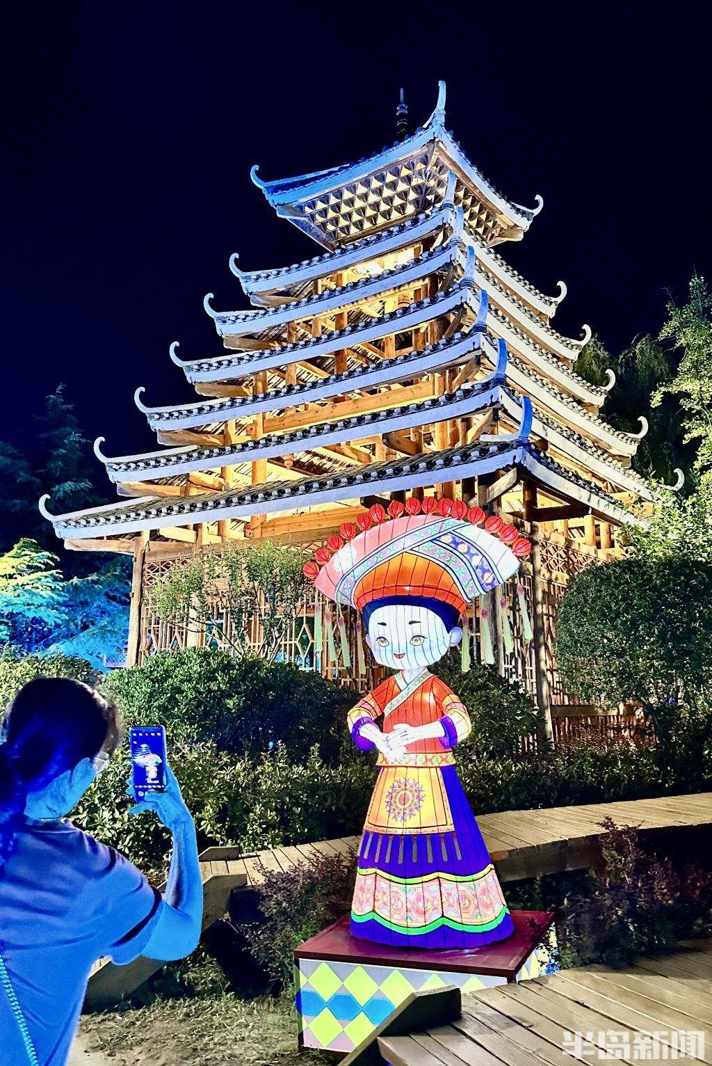 从世博园3号门入口向东北方向步行不久,眼前出现夜霓缤纷的景象,看起来如梦如幻,这里便是国潮风味十足的赏灯会。花灯主入口是一座中式建筑风格的迎宾门,长达50米的迎宾廊道挂满灯笼,穿行其间,恍如置身汉唐。十二生肖花灯俏皮灵动,精致绚烂。百余句经典诗词点亮道旁树木,百家姓灯笼组成长龙,中华传统文化韵味十足。汉服巡游、古典舞蹈、诗歌吟唱、传统曲艺等古风演艺在各个展园间流动演出,并不时与游客互动,营造出欢乐时尚的游园氛围。