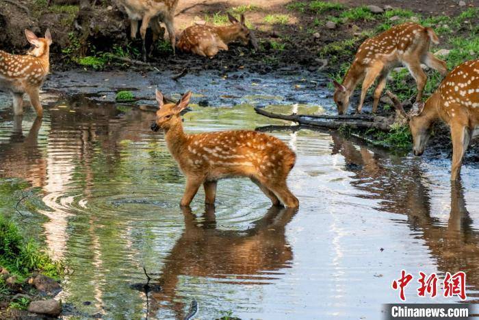 梅花鹿在九峰山养心谷戏水 彭麒玮 摄