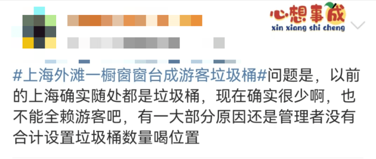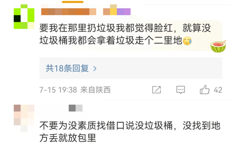 有网友表示:“不能全怪游客,垃圾桶数量设置得不太合理”