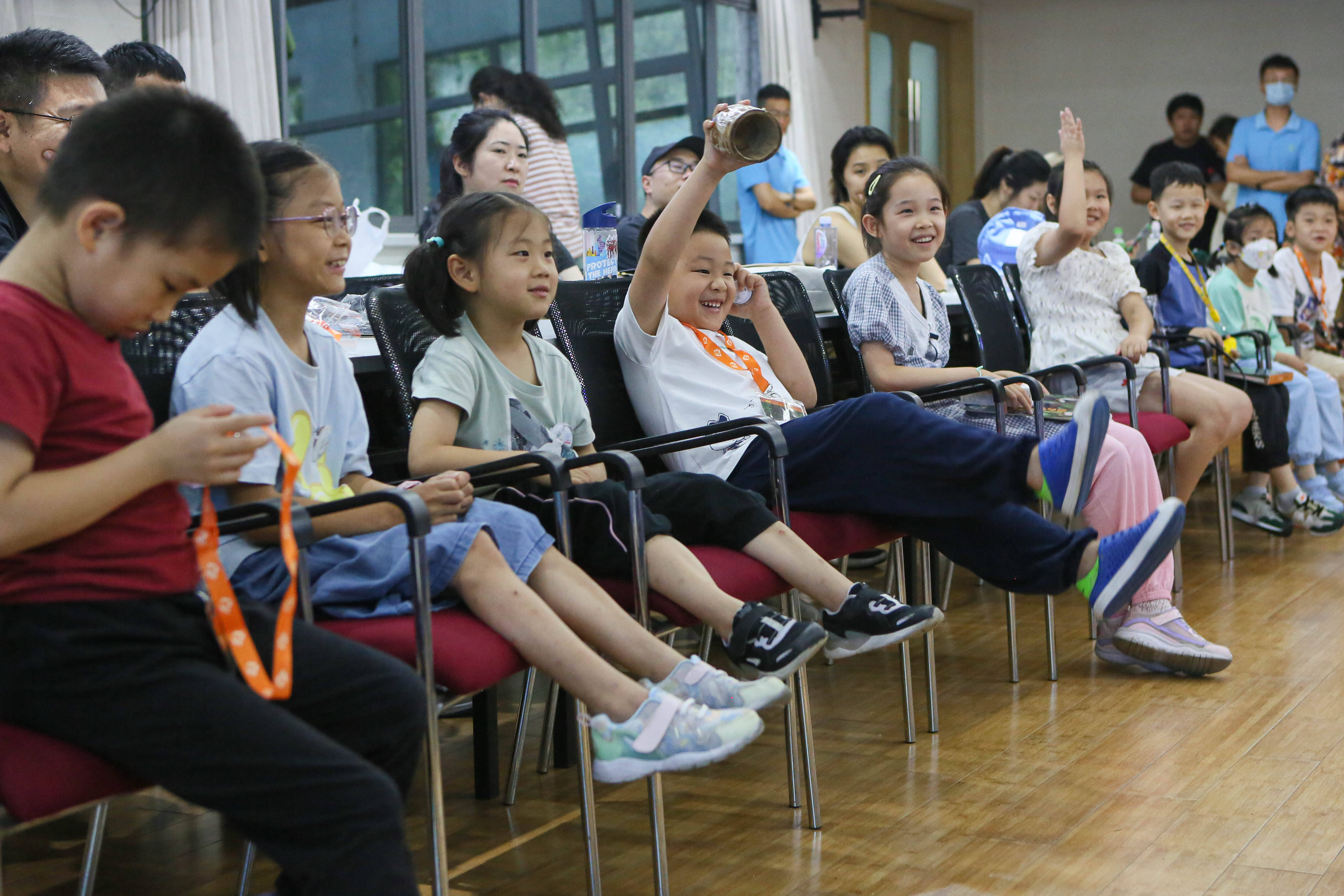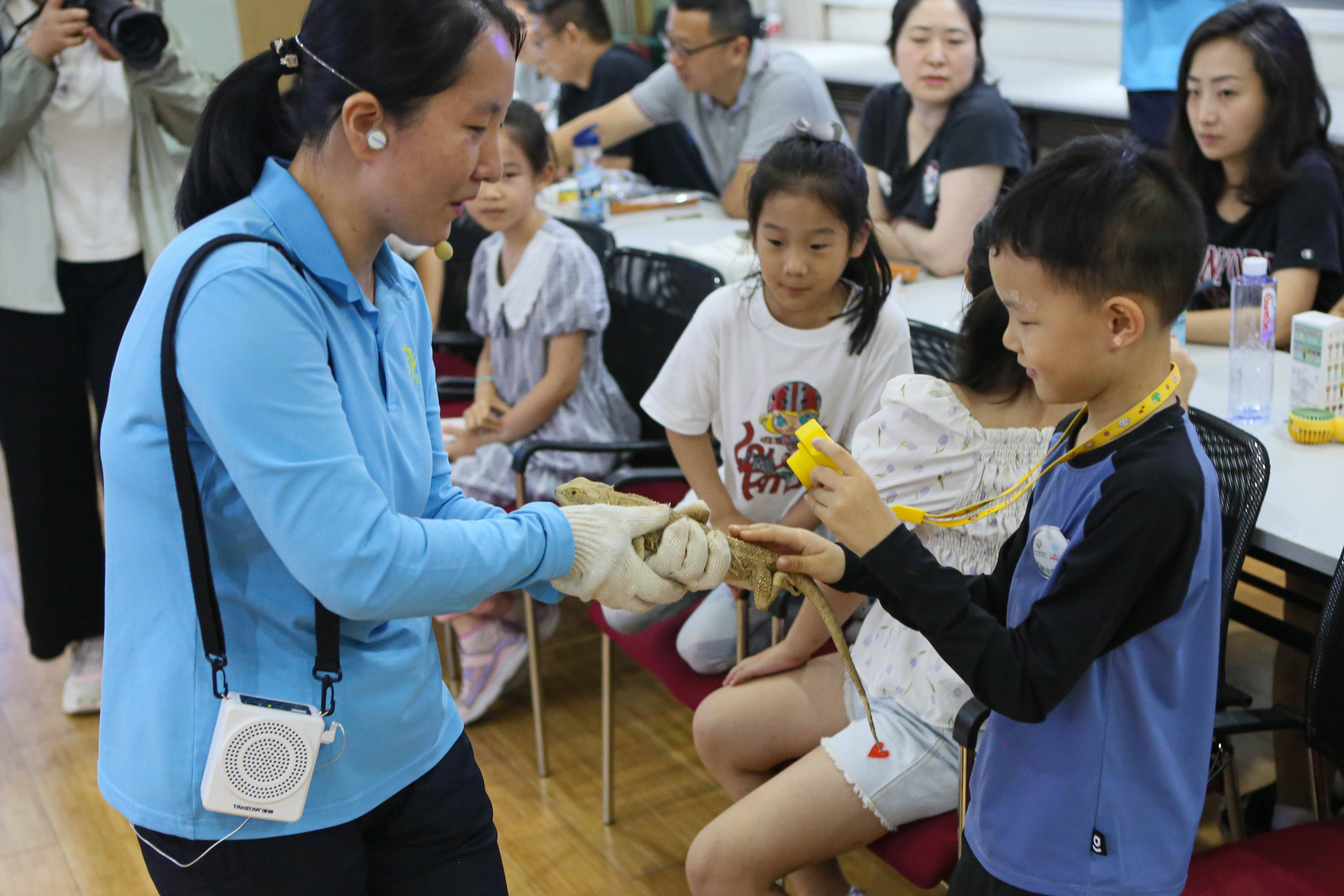 7月15日晚,小朋友们在上海动物园科教馆参加科普课堂。 新华社发(李心怡摄)