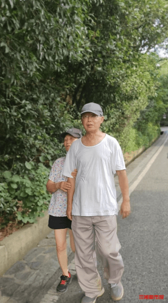 谭先生和父亲都是长沙本地人,经常来岳麓山爬山。“小时候爸爸经常带我来,现在他年纪大了,就由我带他出来锻炼。”33岁的谭先生说,带爸爸来爬山,父子俩都可以锻炼身体。