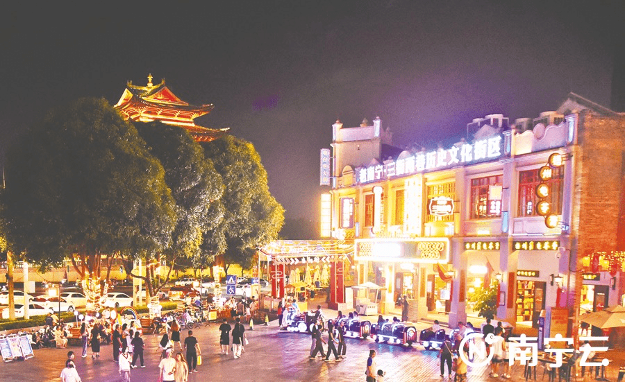 夏夜的清风中,市民游客打卡老南宁·三街两巷历史文化街区。记者 黄红锦 摄
