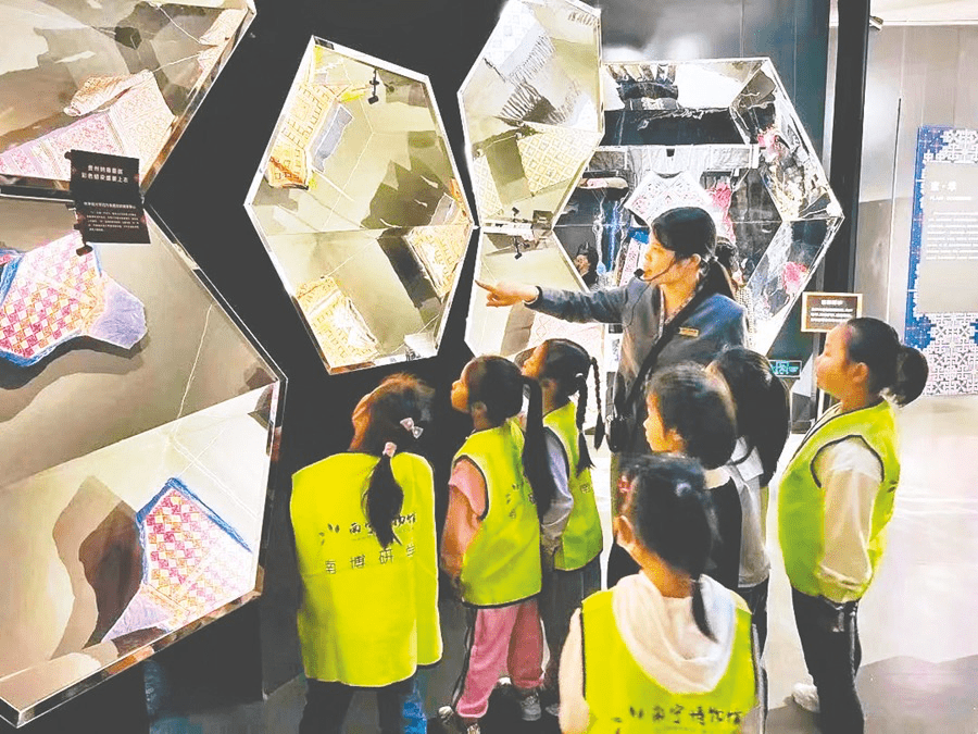 学生们走进南宁博物馆参加研学活动,在老师的带领下欣赏民族服饰之美。