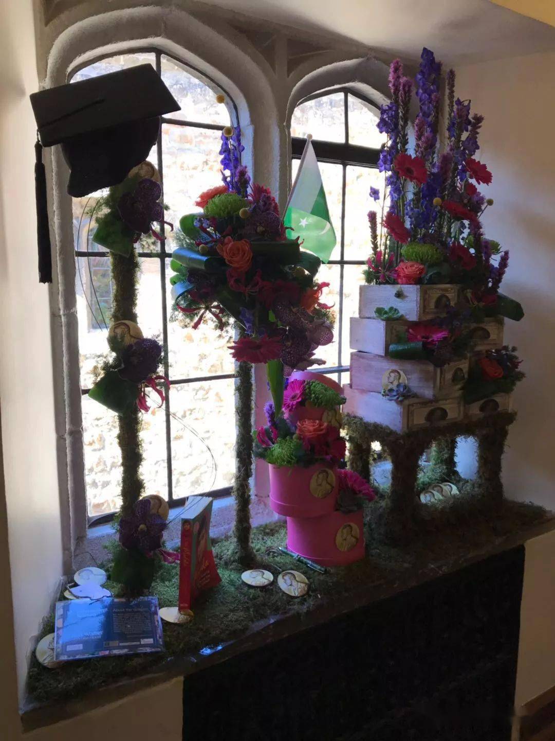 跟着人们穿过嘎嘎作响的老建筑的楼梯,走在走廊中,连每一个窗户前都精心设计了一番,感叹英国人民的艺术融入生活,太美啦!