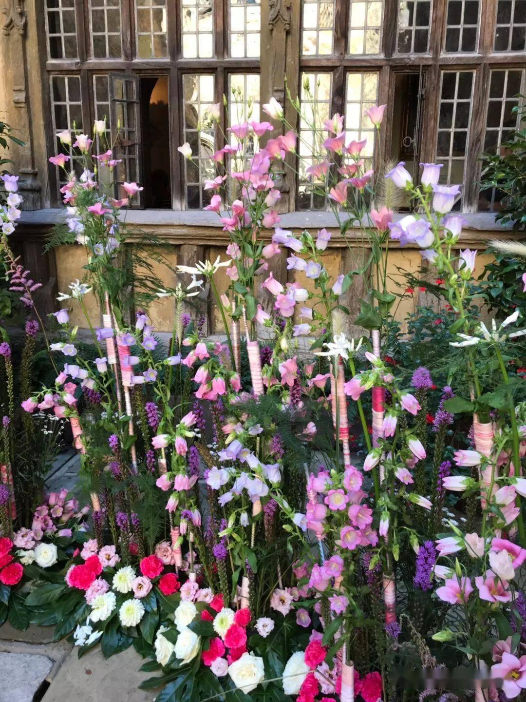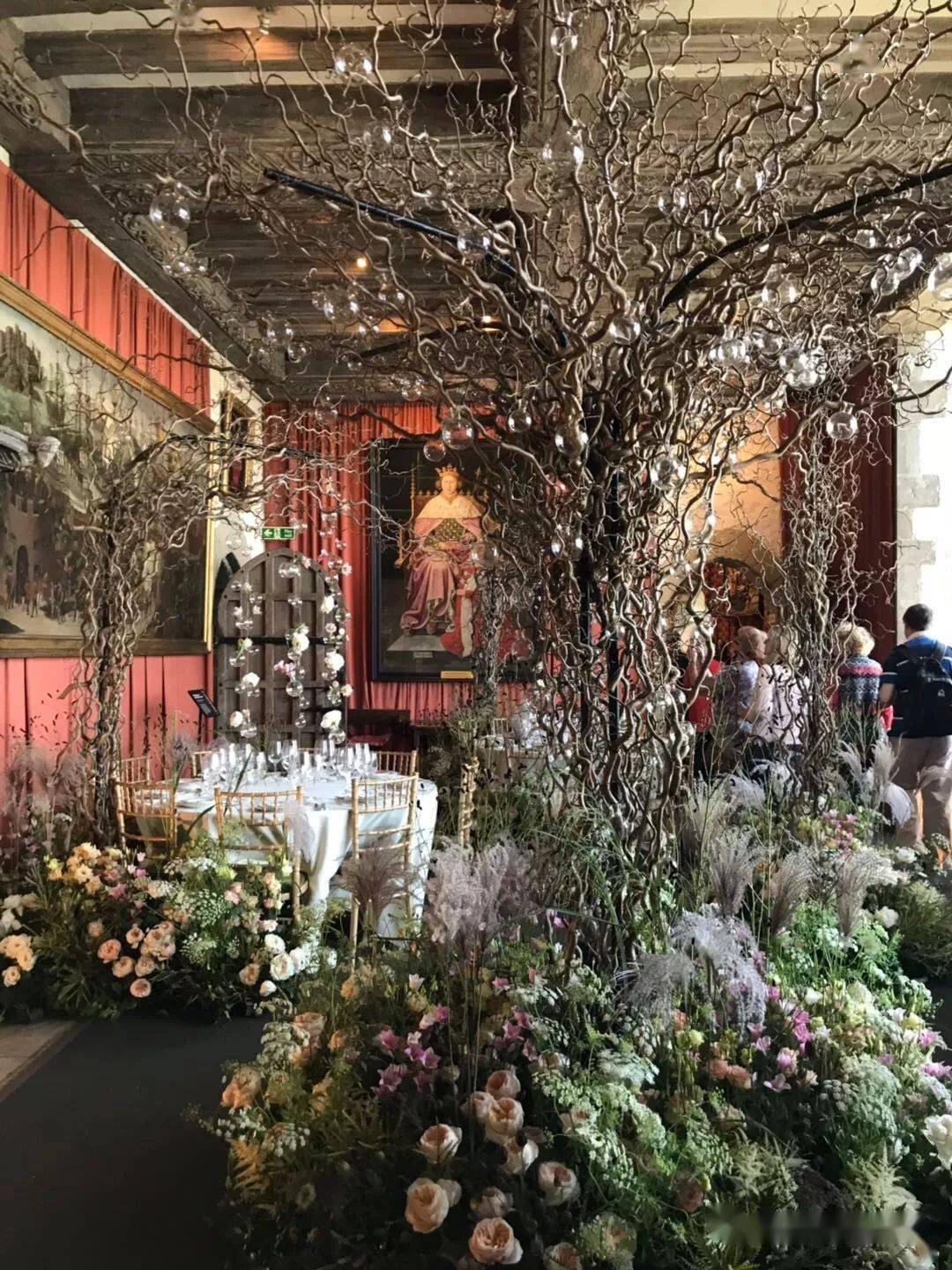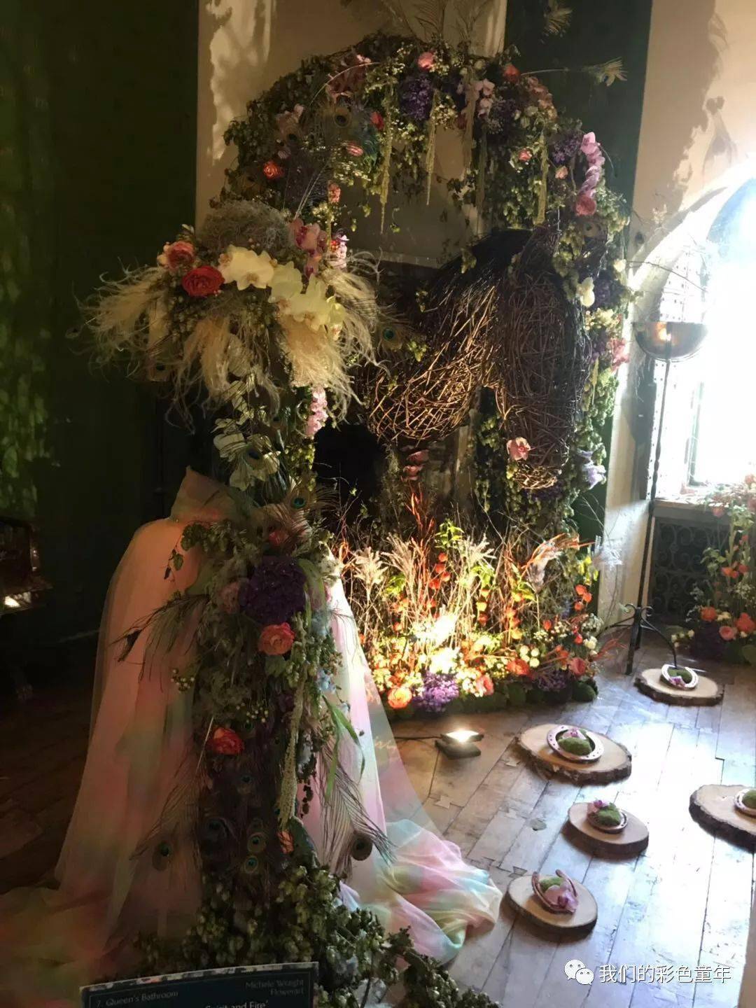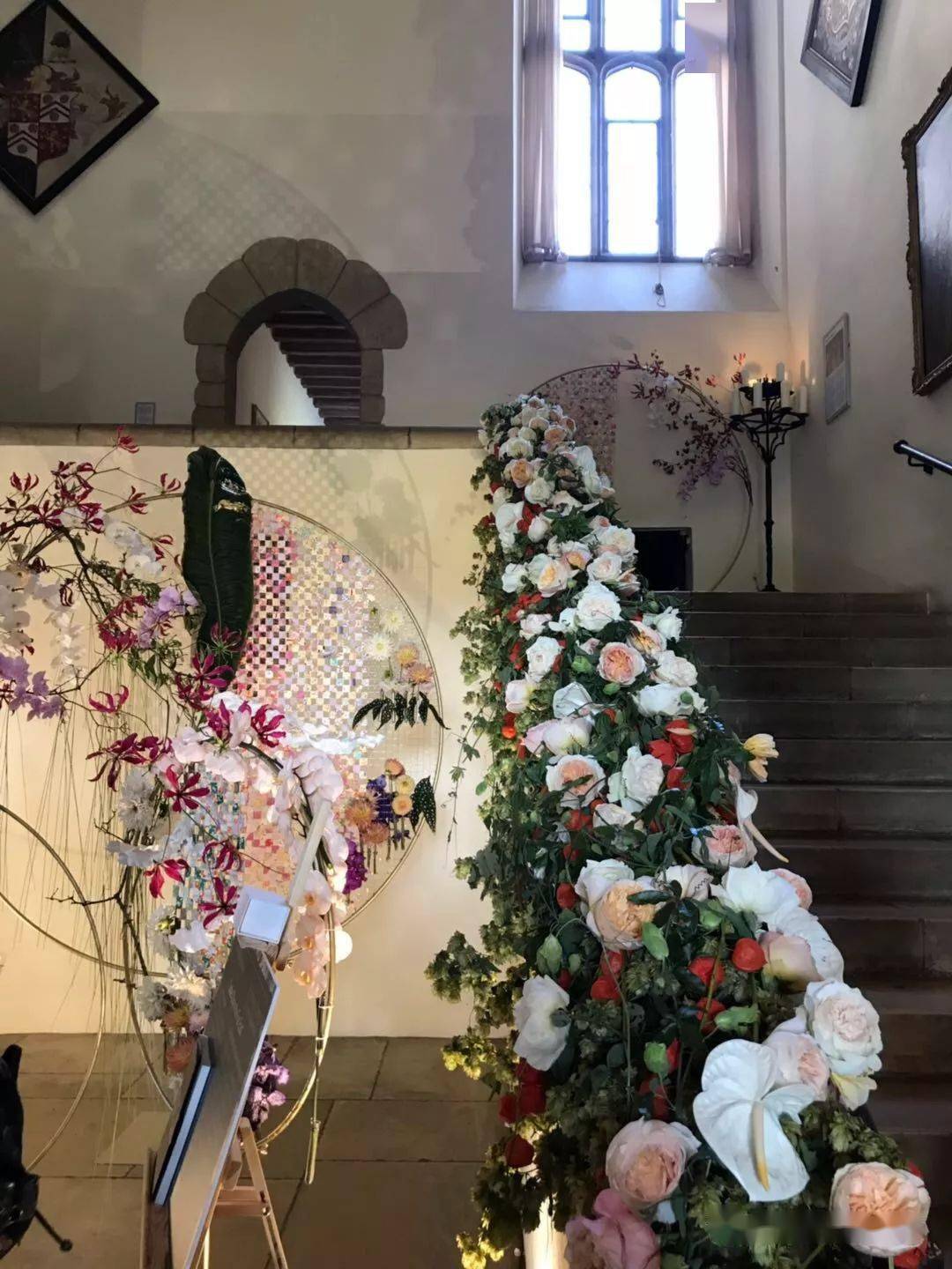这里有一个楼梯的设计让我印象深刻,她们把整个空间用花儿们装扮起来,很震撼!在这座吱吱作响的老古堡里,顺着满是鲜花的扶梯走下去,感觉自己就是今天待嫁的新娘!这场古堡花展可以实现每个女人的浪漫梦想!