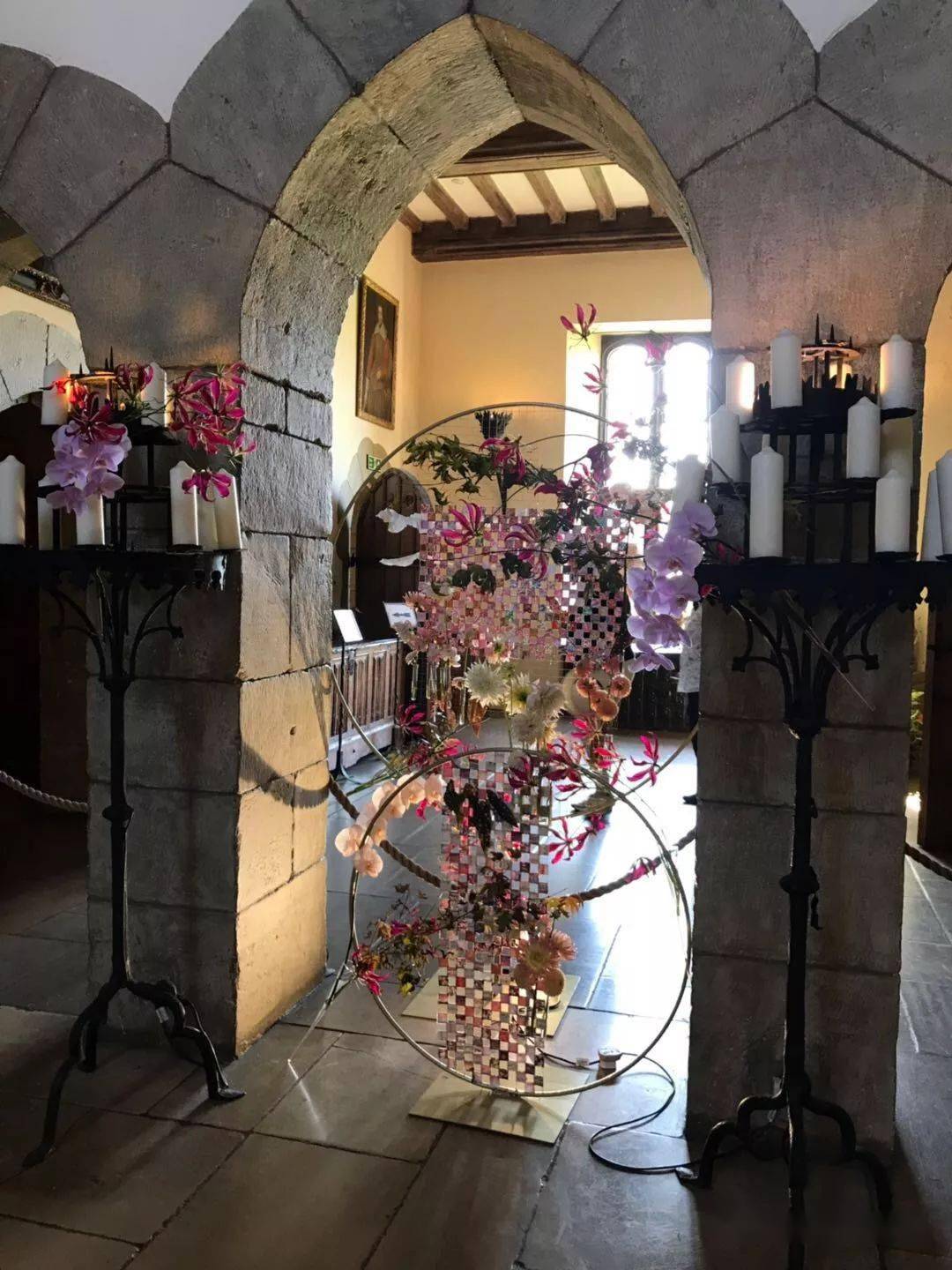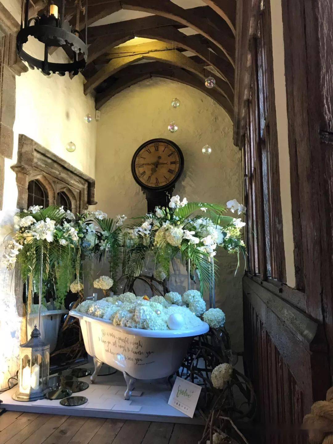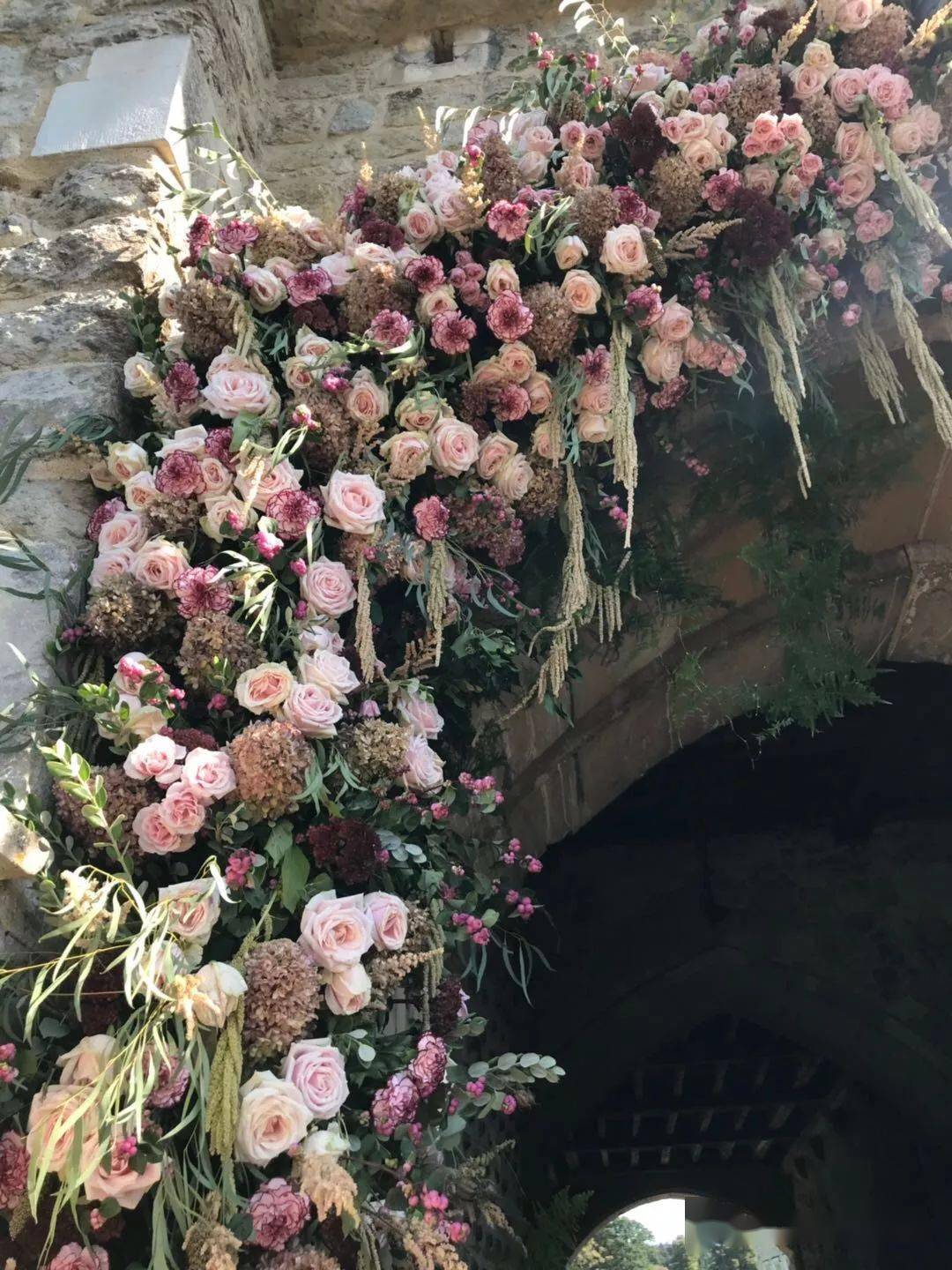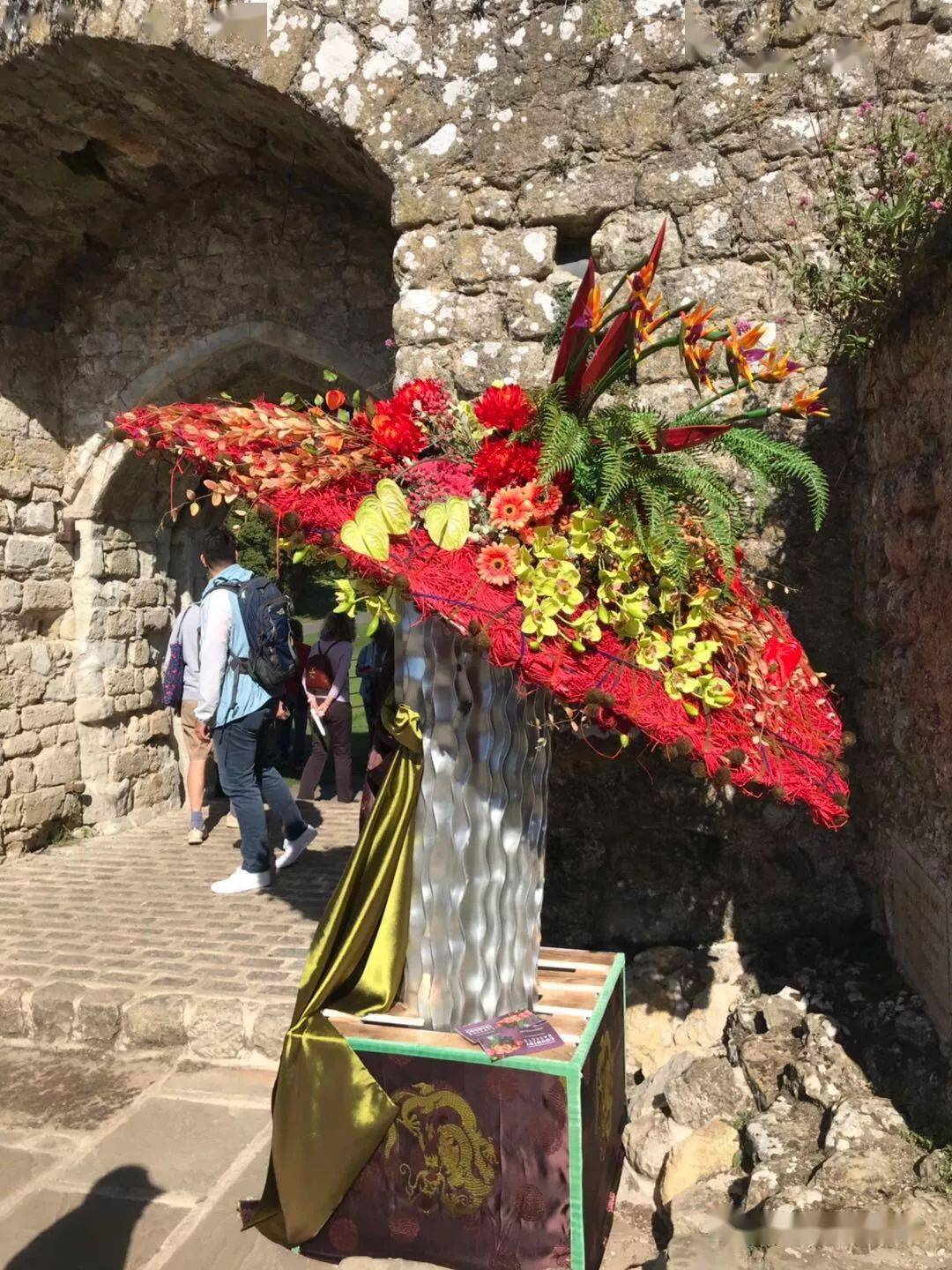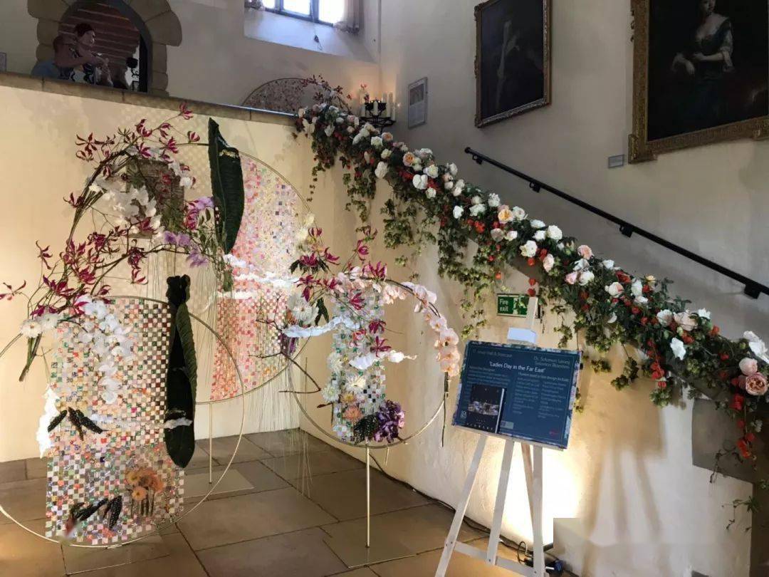 这里有一个楼梯的设计让我印象深刻,她们把整个空间用花儿们装扮起来,很震撼!在这座吱吱作响的老古堡里,顺着满是鲜花的扶梯走下去,感觉自己就是今天待嫁的新娘!这场古堡花展可以实现每个女人的浪漫梦想!
