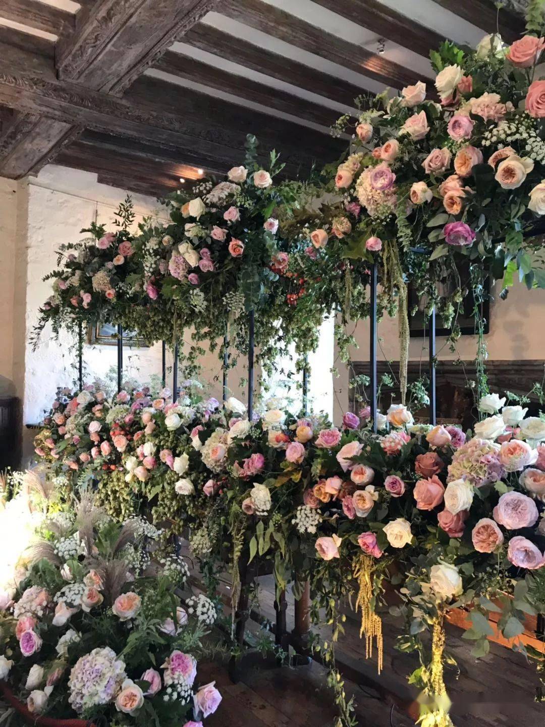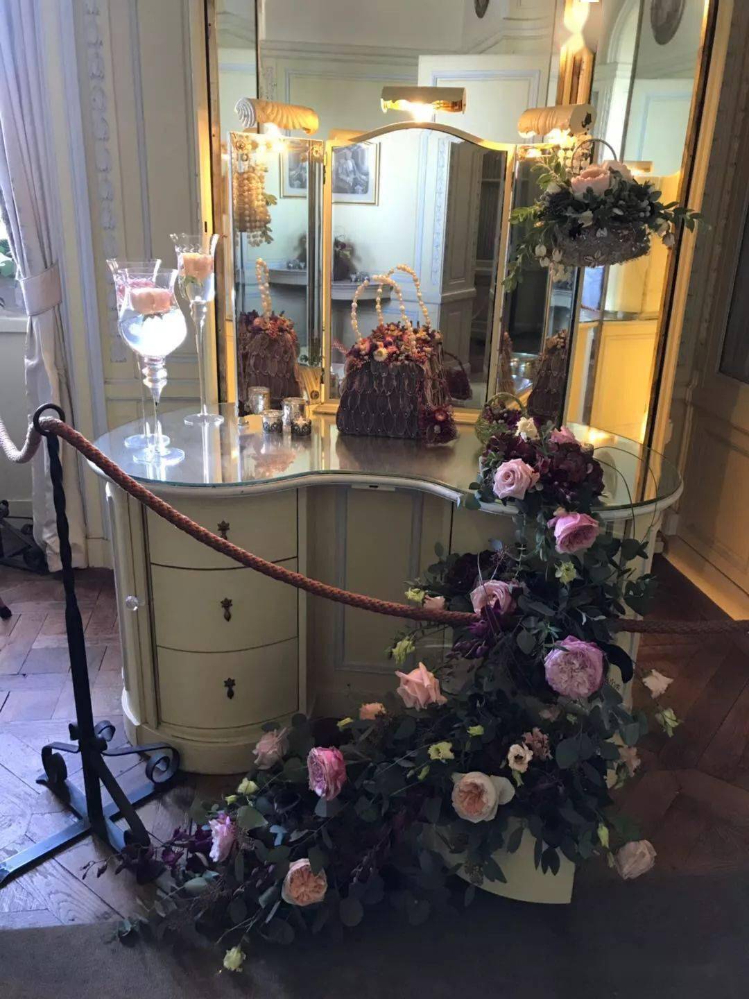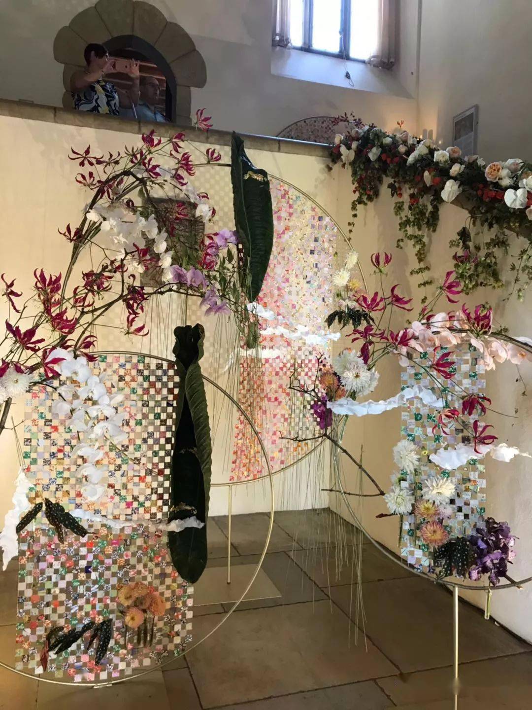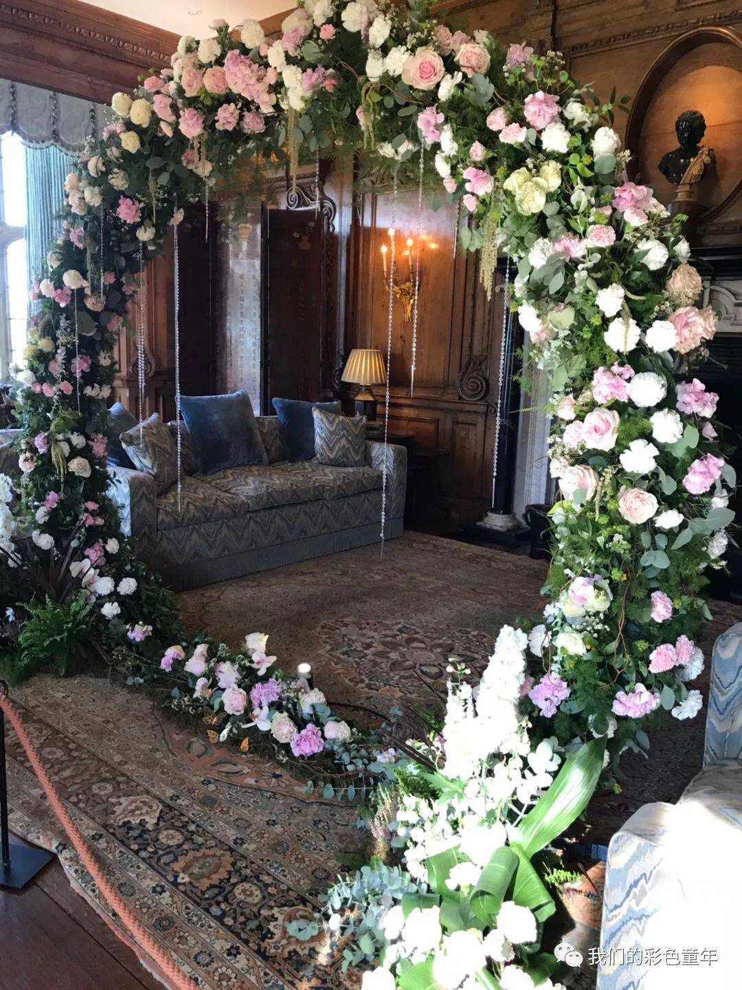 这里有一个楼梯的设计让我印象深刻,她们把整个空间用花儿们装扮起来,很震撼!在这座吱吱作响的老古堡里,顺着满是鲜花的扶梯走下去,感觉自己就是今天待嫁的新娘!这场古堡花展可以实现每个女人的浪漫梦想!