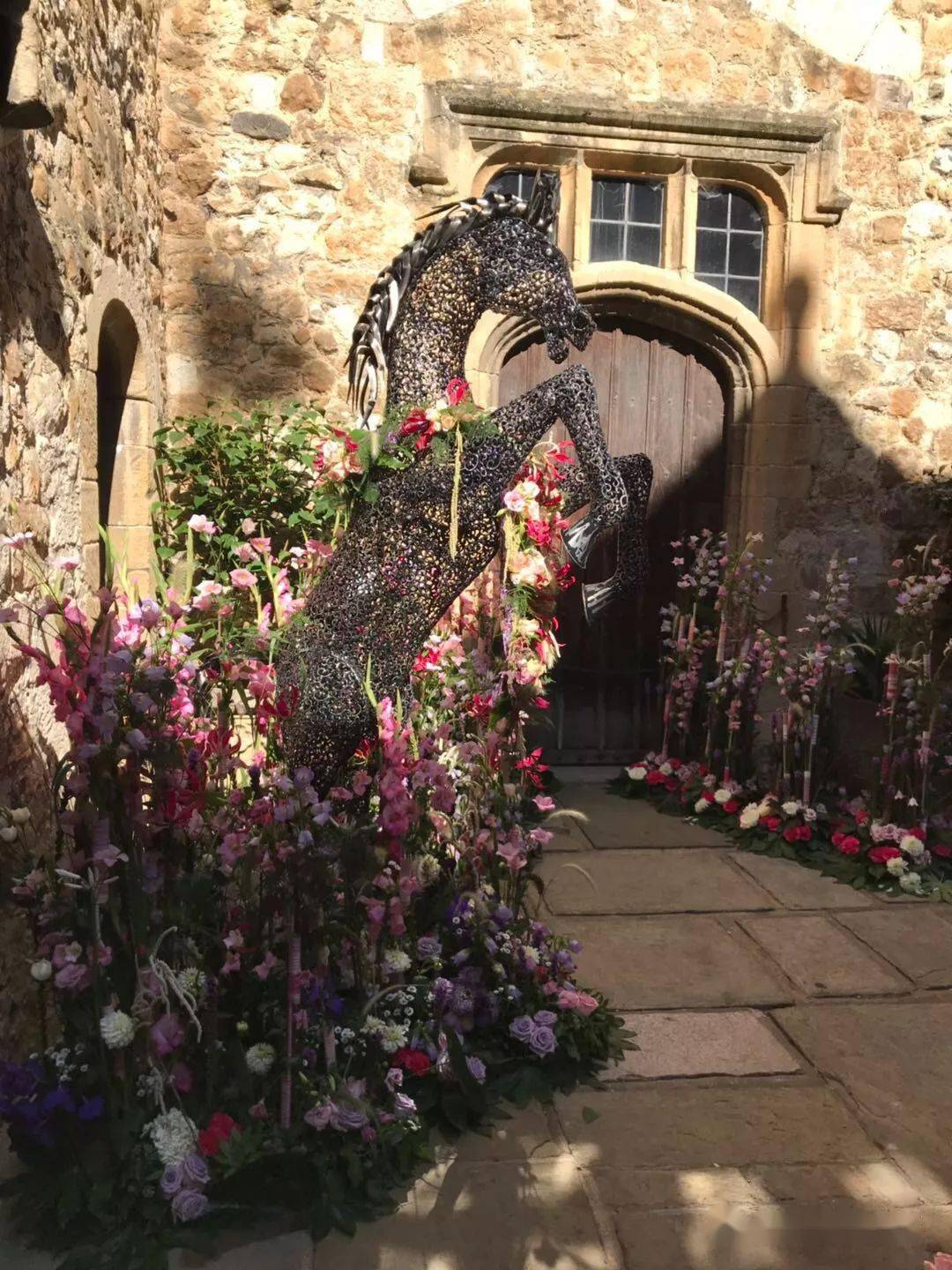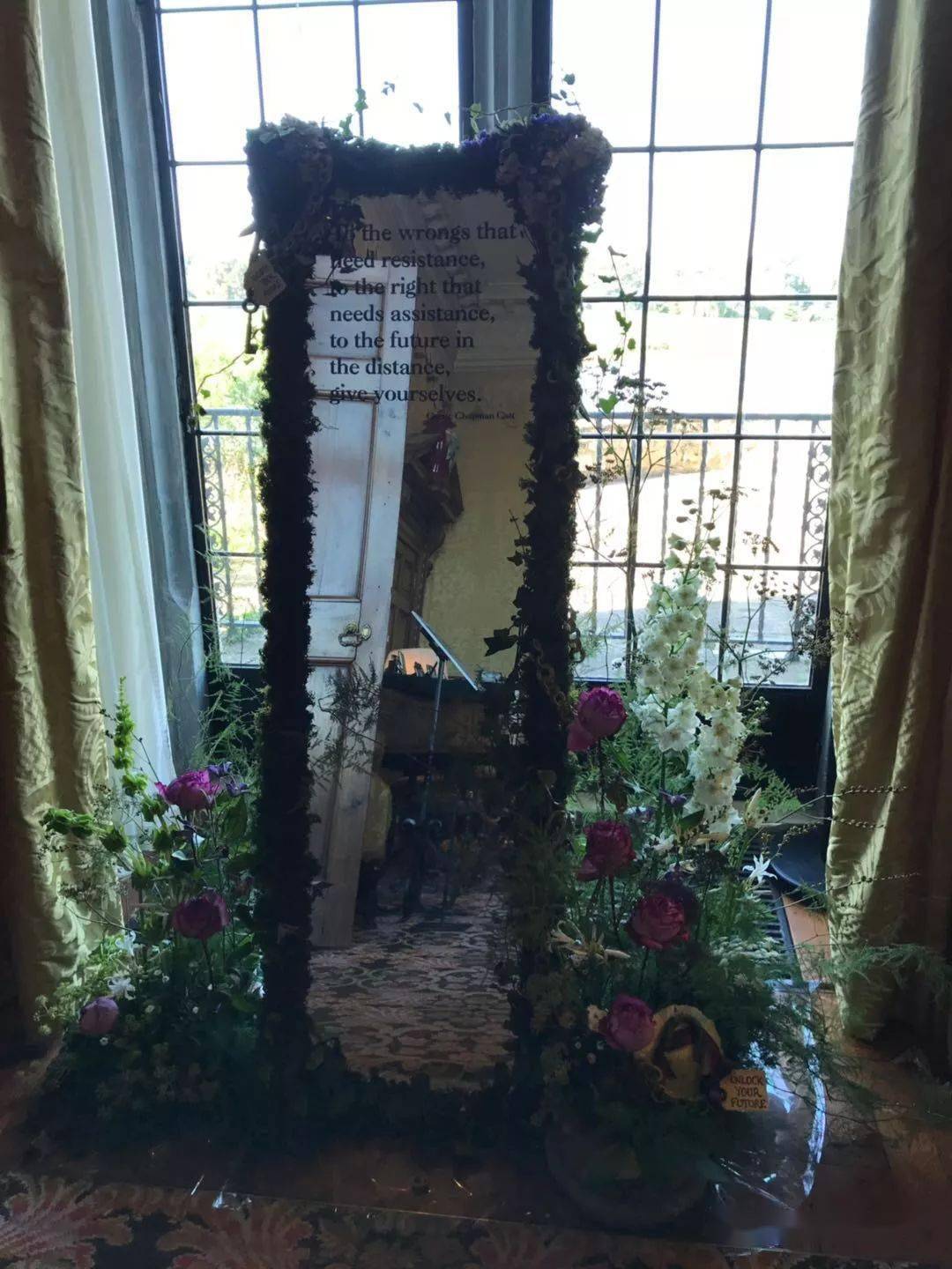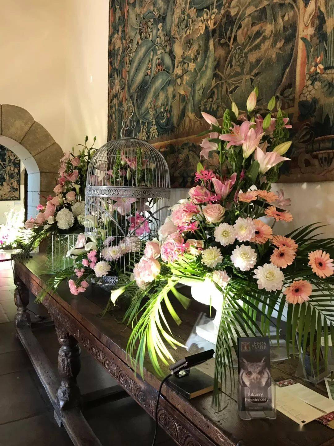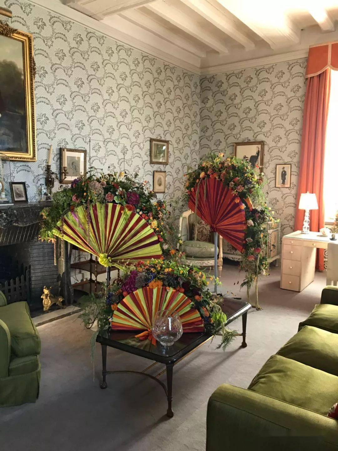 这里有一个楼梯的设计让我印象深刻,她们把整个空间用花儿们装扮起来,很震撼!在这座吱吱作响的老古堡里,顺着满是鲜花的扶梯走下去,感觉自己就是今天待嫁的新娘!这场古堡花展可以实现每个女人的浪漫梦想!