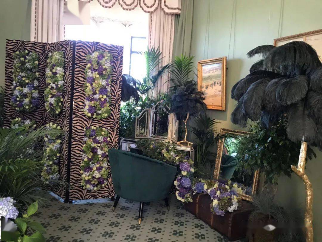 穿过走廊进入一个非常奇妙的房间,感觉自己掉入了热带雨林中一样,满眼的绿色,满眼的浪漫,每个角落都有拍不完的照片!从来没有想过当绿色碰到紫色会是这样的效果!好高级好漂亮!