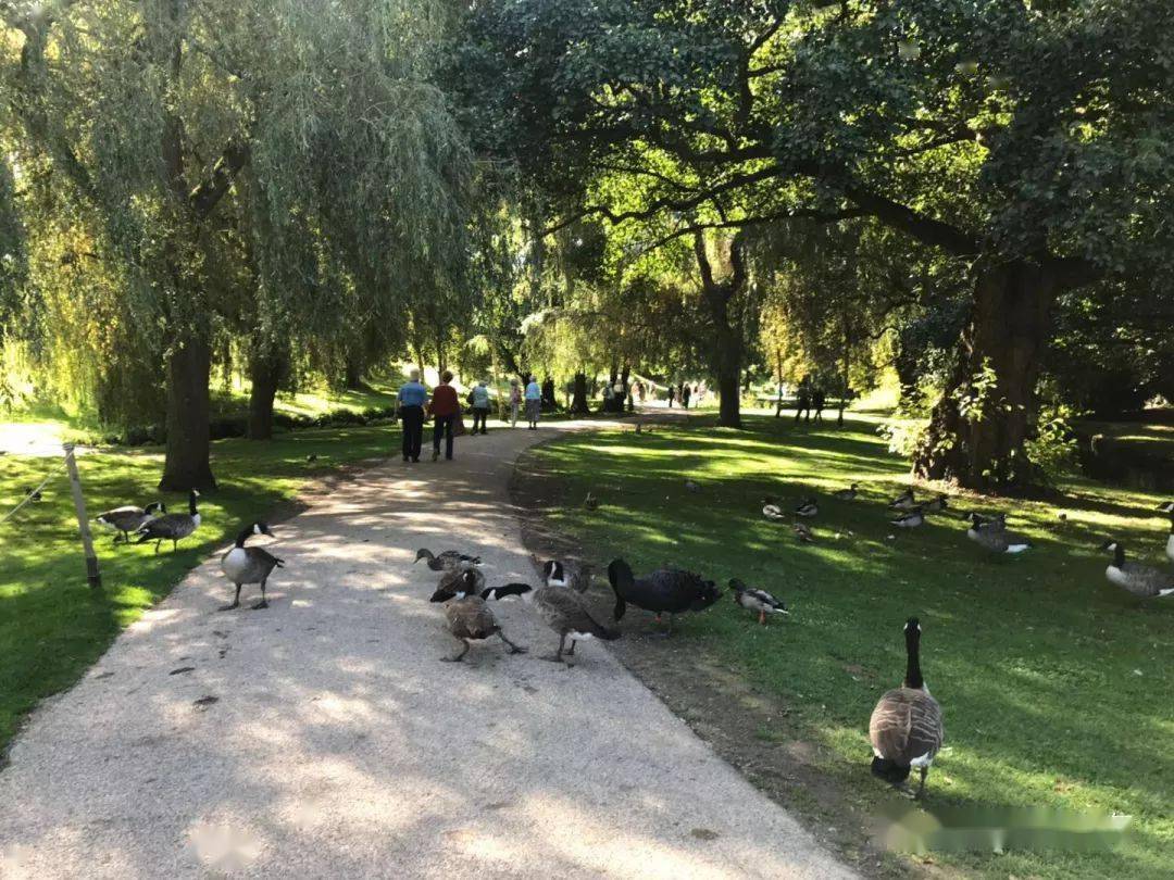 从走进园子开始到城堡脚下其实是有一段距离的,要走上很长一段绿毯才能到达,这里有很多奇奇怪怪的绿色植物,我超级爱那些大叶子的,有的像我们荷花一样很美,整个园林植被设计的非常好,各种植物穿插,高低起伏,形状各异!让我目不暇接,有种坠入仙境般的感觉!时不时的一群“鸭仙人们”跟着我摇头摆尾!人事间那些“烦心事”似乎也瞬间飞逝了!