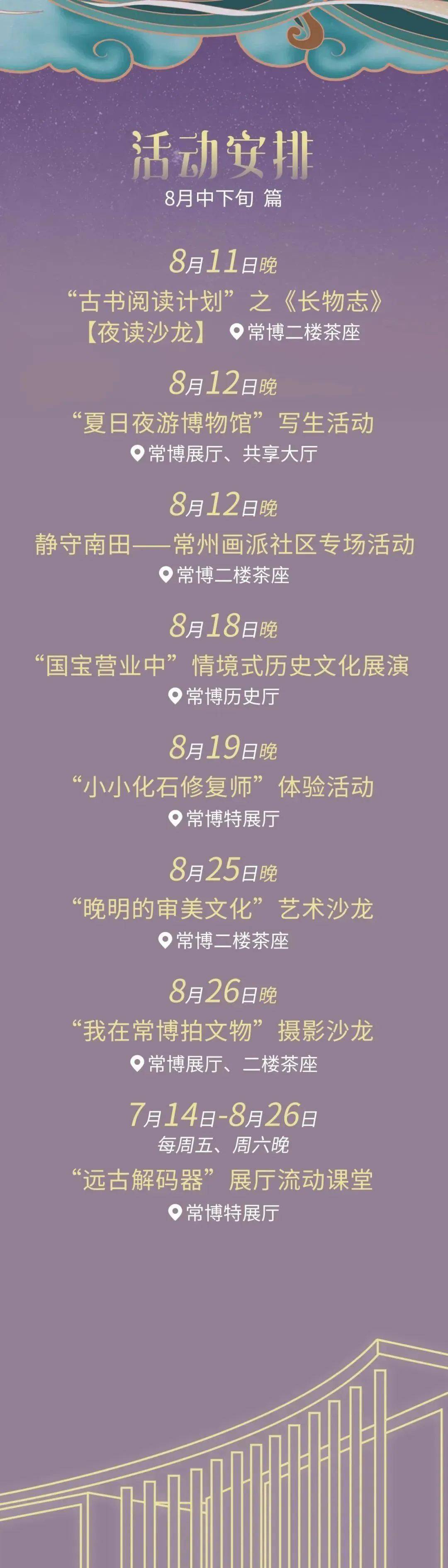 常州博物馆还准备了锡剧演出、文艺展演、讲座沙龙、趣味课程等17项专场活动,带大家度过一个个难忘的文化夏夜。