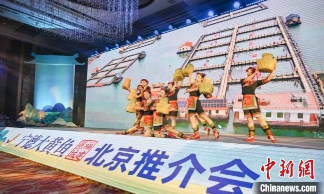 “山海宁德 黄鱼之都”——福建·蕉城“宁德大黄鱼”北京推介会现场。 蕉城区融媒体中心 供图