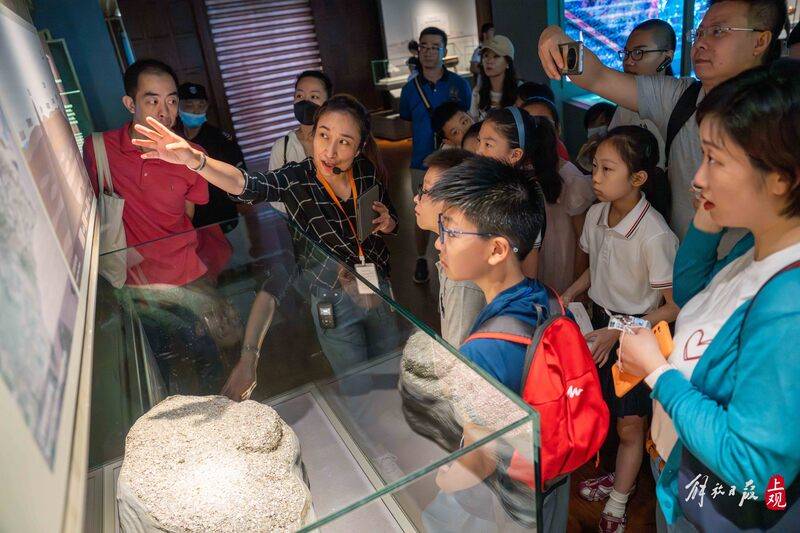 即将就读5年级的研学团成员中的孙毅成说,他今天最感兴趣的是上海的远古和古代历史。“我原来一直以为上海的历史很短,没想到可以追溯到6000多年前。我也是第一次知道上海一开始并没有现在这么大,而是在海浪的冲击下一点点堆积‘长大’的,这些知识让我觉得很新奇。”