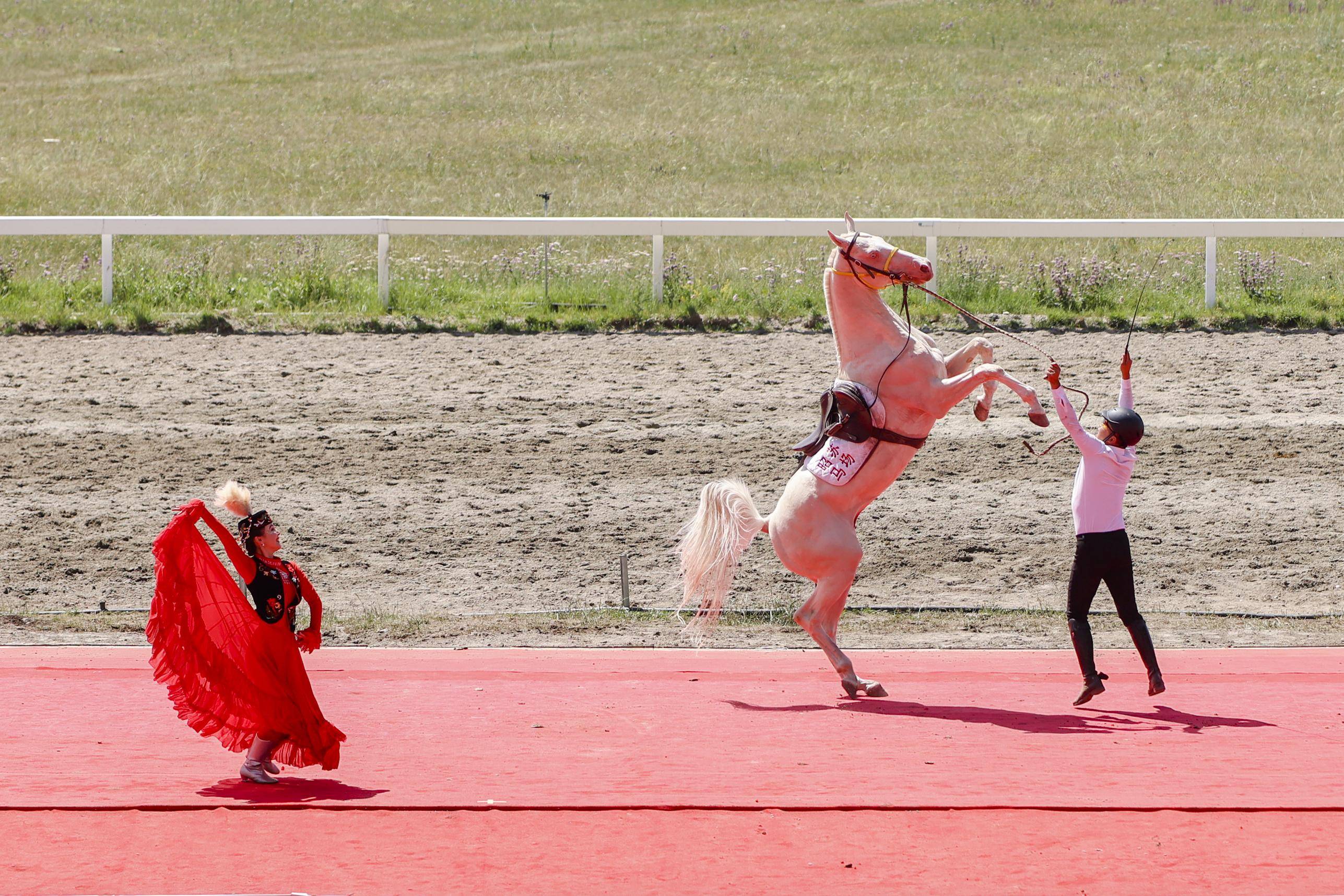 这是7月16日在开幕式上拍摄的骏马。 新华社记者 赵戈 摄