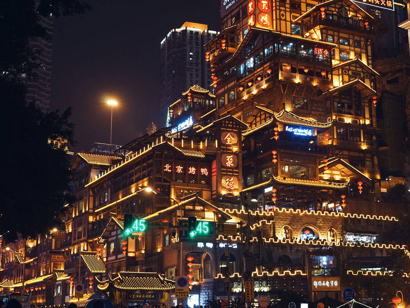 洪崖洞是重庆最具民族特色和最具魅力的建筑群之一,也是《千与千寻》中梦幻世界的原型之一。它位于渝中区朝天门附近,依山而建,由木质结构的吊脚楼组成。白天的洪崖洞展现了重庆传统的建筑风格和民俗文化,晚上的洪崖洞则闪耀着绚丽的灯光和浪漫的氛围。在洪崖洞内,你可以品尝到各种各样的美食、特产和外国风情,也可以欣赏到千厮门大桥和嘉陵江的美景。
