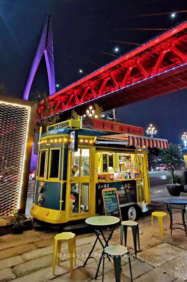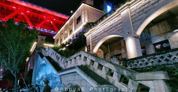 从拍摄角度上来说,龙门浩老街是绝佳的取景地。独有的退台式设计,让依山而建的老街每一层都能无遮挡地眺望重庆江景。不仅如此,在老街可以一次性收获水陆空的特色交通,最具重庆特点的长江索道,到江中游船,陆上交通,桥上轻轨,魔幻的8D重庆你值得拥有哦。
