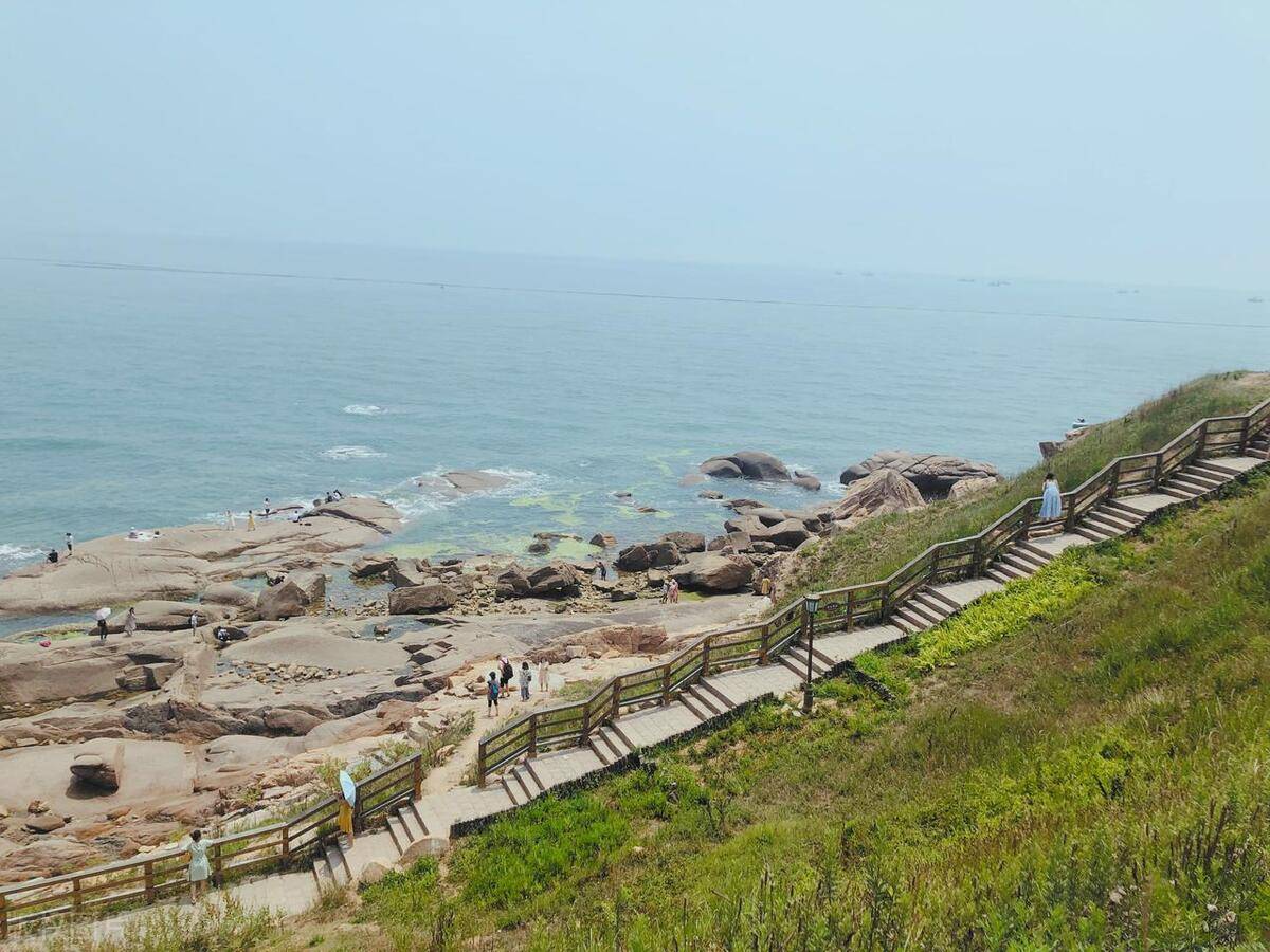 海边的木栈道、辽阔广袤的大海、浅蓝色的海水,更喜欢这里的安静。说这里是青岛最美的海似乎也不为过,小众而美好。木栈道阶梯相连,阶梯很长。一边是大海,一边是峭壁,峭壁底下还有鲜花,有一种独特的美。