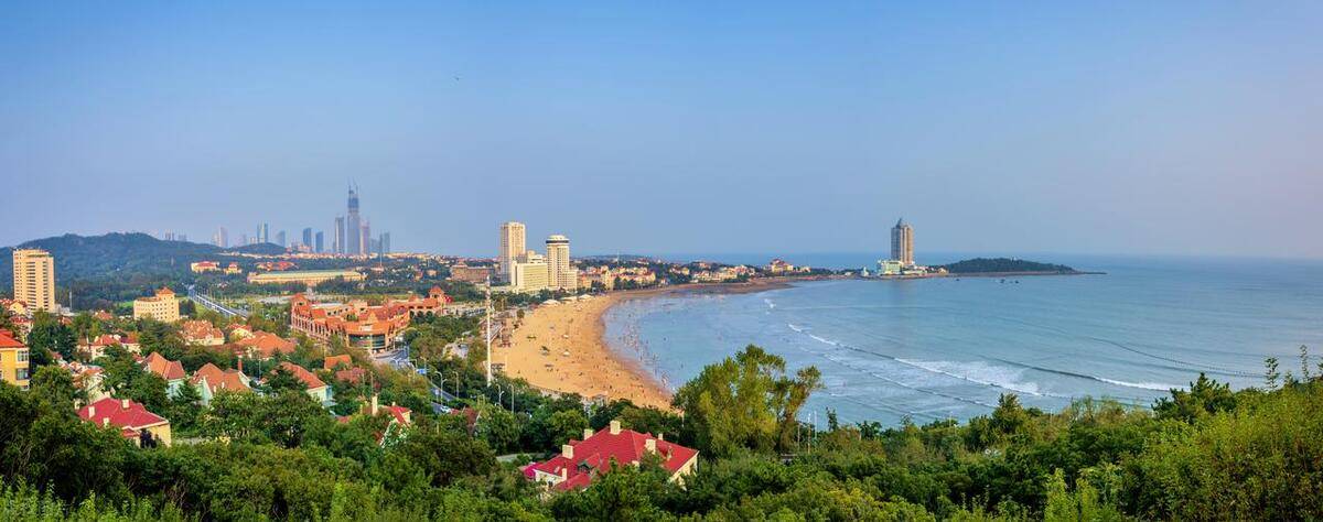 绿树掩映,银杏树、梧桐树居多,繁花似锦,紫薇花随处可见,显得这一片环境特别淡雅清幽。而且八大关就在海边,登高瞭望,这里就是传说中那个“红瓦绿树、碧海蓝天”的青岛。