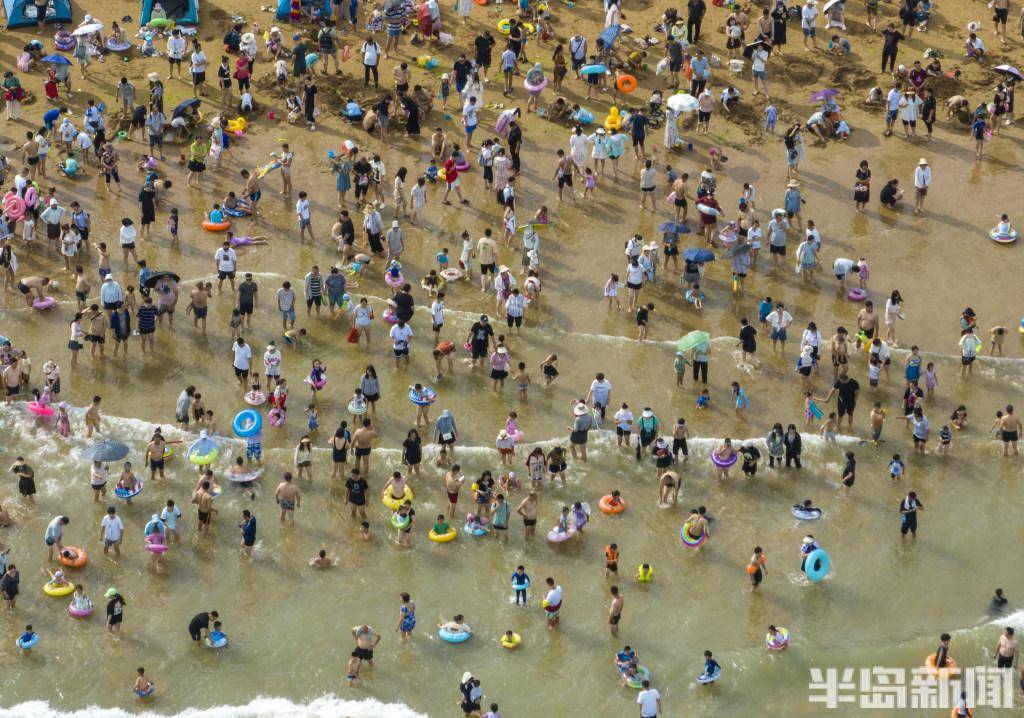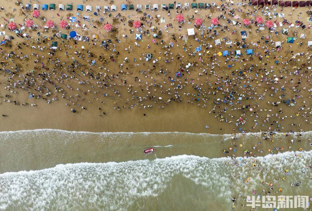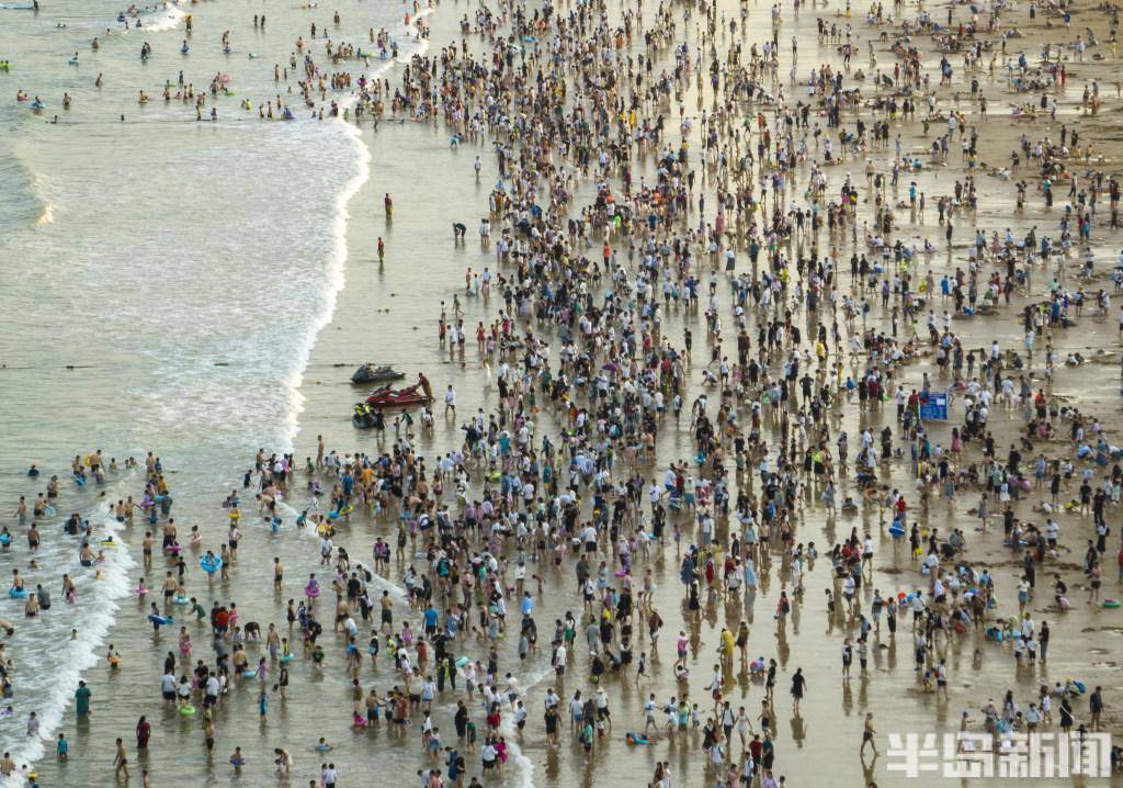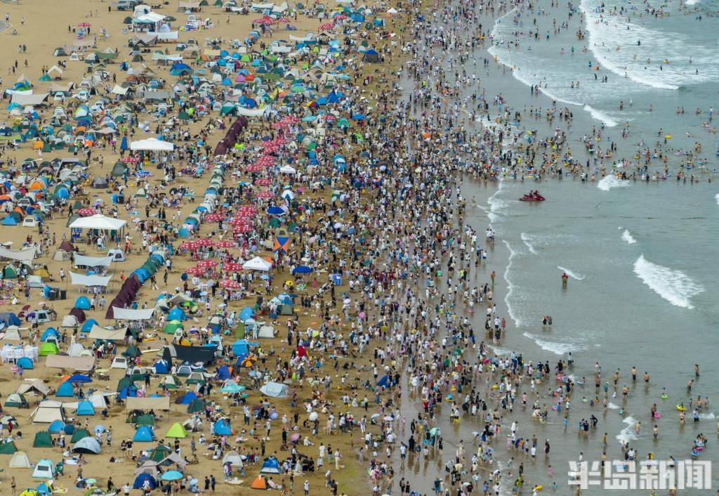 周末的石老人海水浴场开启“人潮人海”模式,来自各地的游客汇集而来,在夏日里争相感受大海带来的凉爽。7月16日下午,石老人海水浴场周边的停车场已是一位难求,而来自全国各地的车辆还在不断涌入,浴场里更是人山人海、密密麻麻。沙滩上遮阳伞、帐篷装扮其中,让热闹的沙滩色彩斑斓。