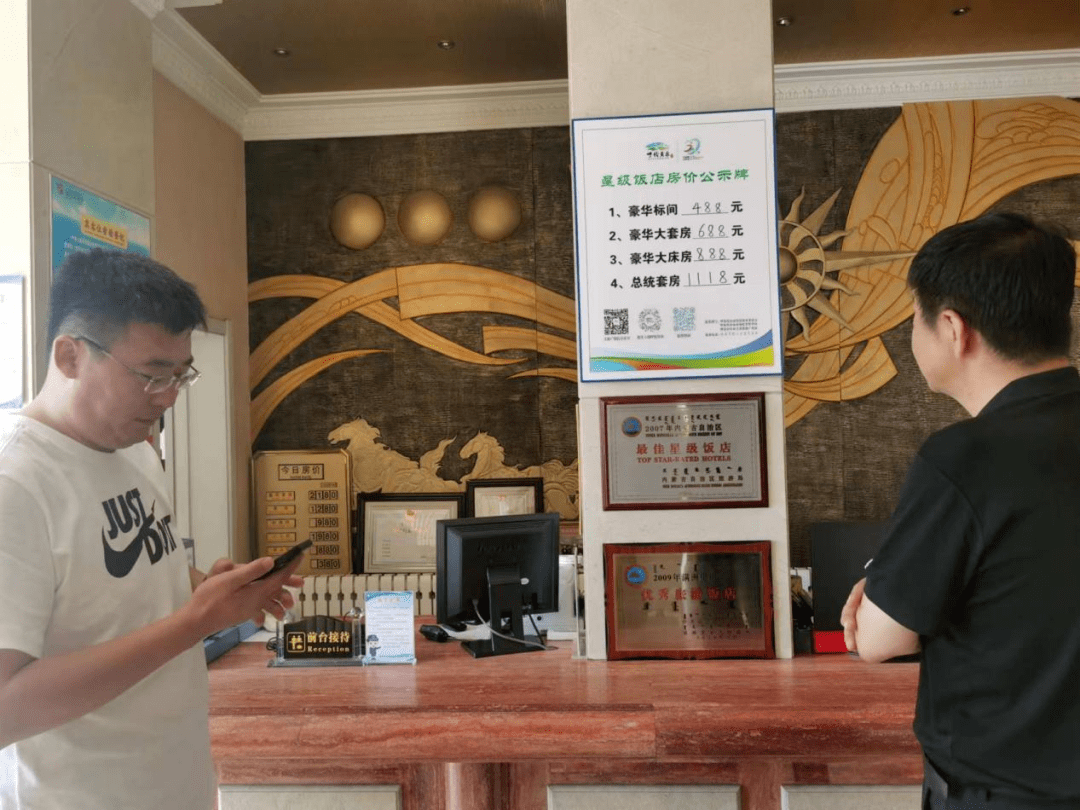7月15日市文体旅游广电局对我市星级旅游饭店、旅行社,开展旅游季节安全生产与诚信经营、明码标价行业督导检查。