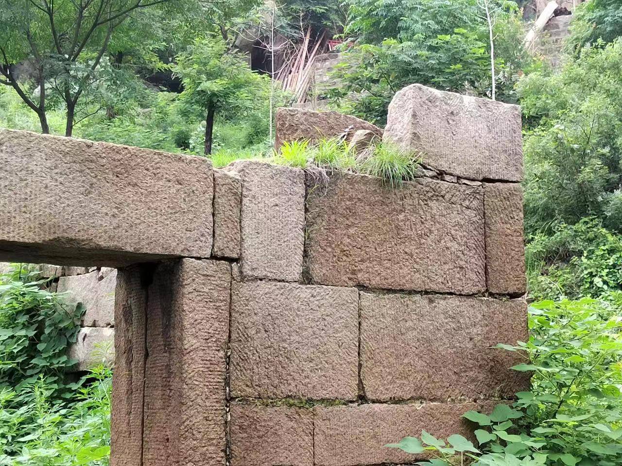 龙山是邹城、滕州两市的界山,呈东北、西南走向,龙头完整地伸入邹城境内,形成主峰,龙背的阳面是滕州市、阴面是邹城市。站在山顶俯瞰,龙山确实如巨龙横卧,龙头、龙脚、龙身、龙尾惟妙惟肖。更为奇妙的是,龙山的像模像样山峰就龙头一个,海拔最高处是龙头南面的龙脊,龙脊之下向西南方向渐次矮去,龙尾部分与其说是“山”,不如说是“岭”。龙背上石壁陡峭、荆棘丛生,步行通过都很困难,真可谓山脊。而龙山主峰之上地势开阔,原有规模宏大,布局严谨的高虚清微宫和灵山寺两组建筑群,是邹东南一大胜景。楼角、玉皇殿、灵山寺等都在龙头山上,多已成为废墟。在楼角原址东南不远处,至今矗立着龙山玉皇殿,家乡人叫它“没mu梁殿”。大殿整体包括门窗,清一色采用花岗岩材料建成,虽经几百年风雨至今滴水不漏,石门上方“云捧金阙”四个大字见证了日月轮回。高虚清微宫最初建造于明朝永乐八年(1410年),明朝崇祯三年(1630年)又进行大修,玉皇殿殿顶镶嵌石碑记载了重修事件,这从墙体新旧不一的方石也可以看出大修的痕迹。玉皇殿应该是“高虚清微宫”的一部分,想来当年这里有道家修行。楼角废墟至今还有“隆古碑”残片,碑文已不完整。楼堂倒塌之前这里是什么建筑,有说是藏经楼,有说是纪念明朝高僧的佛塔,由于碑志被毁,已无从说清。如果这块康熙二十五年(1686年)的碑是为楼角建筑所立,那么可以证明楼角建筑存在于“没梁殿”之后。