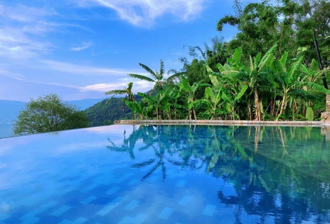 无边泳池水深1.4米,以梯田田埂形态设计,自然地融入于整个梯田环境中。在这里可以一边游泳,一边欣赏梯田的壮丽美景。