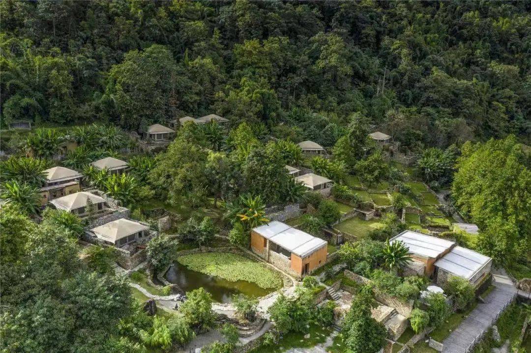 整个营地占地46亩,是由一个废弃的村寨改造而成,康藤团队从考古学家身上受到启发,梳理出石头寨的村落肌理,打造了一座极具特色的“考古探秘”主题帐篷营地。营地诞生于世界文化遗产红河哈尼梯田之畔,出于尊重哈尼族千年梯田稻作文化,村寨中的残垣断壁被怀有敬意地修复及保留,以帐篷营地中遗迹公园的形式呈现于世人眼前。